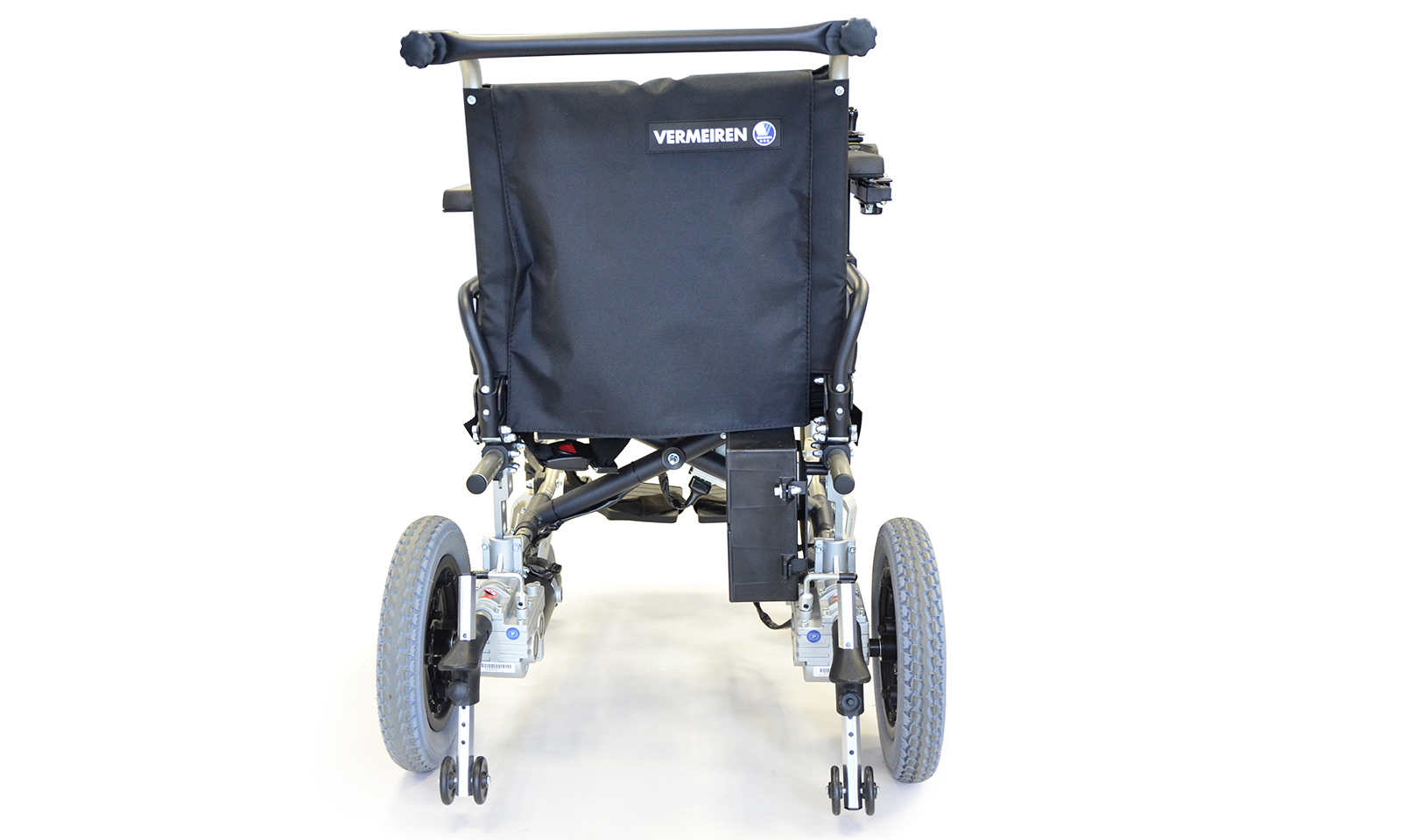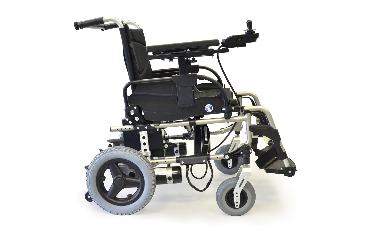 Pover Express is an electronic wheelchair with a double cross, equipped with footrests and armrests which are adjustable in height and width. Complete with a powerful motor and batteries for a smooth driving experience. The Express is very compact, making it easy to navigate in smaller spaces and can also be folded to facilitate transport.