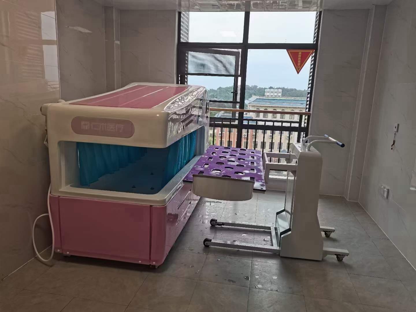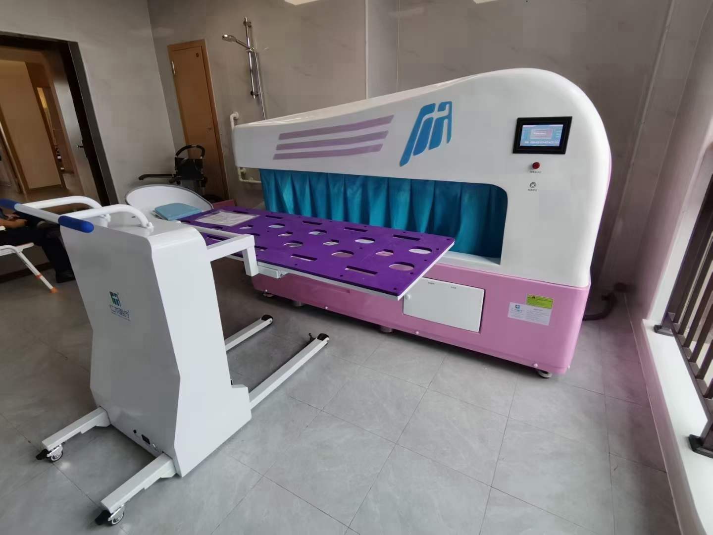 Barrier-free assisted bathing machine features dual functions of cleansing and massage. Utilizing a side-entry design, it offers caregivers convenience while saving space. Its one-touch operation allows simple control with customizable bathing modes, complete with built-in shower gel dispensers. The chamber's water jet massage effectively stimulates metabolism, relaxes tense muscles, enhances blood circulation, reduces stress, eases joint discomfort, and alleviates chronic pain in neck, shoulder, lumbar, and leg areas. Meeting the latest national standards, this device is suitable for hospitals, nursing homes, communities, and households alike.