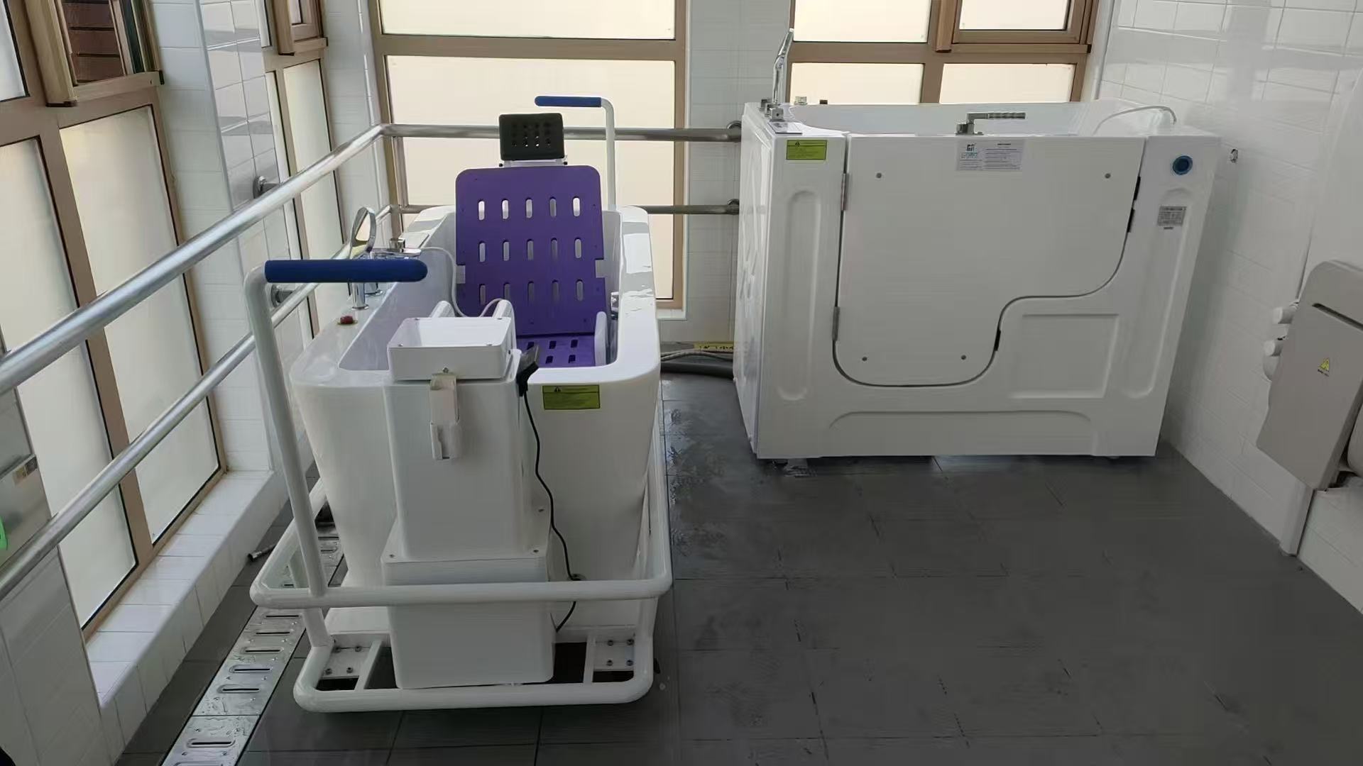 RH-YD-006 Barrier-Free Sliding Bath, featuring 2300×800×1050mm acrylic one-piece molding with zero formaldehyde dead zones, 1700×800×440mm tub with 550L large capacity. The 500mm silent sliding horizontal board allows arbitrary stops, anti-slip multi-hole support for full-body weight-bearing, and direct wheelchair transfer into bath. 12 sets of 120-hole bubble massage with 3rd-level massage + 32-point rainbow LED light therapy, dual water supply via shower and waterfall, 50mm quick drain. Button panel, ozone disinfection <0.01 mg/m³, water-electricity separation with dual leakage protection, 220V/700W low-power design, CE certification, suitable for disabled individuals, postoperative patients, and rehabilitation centers.