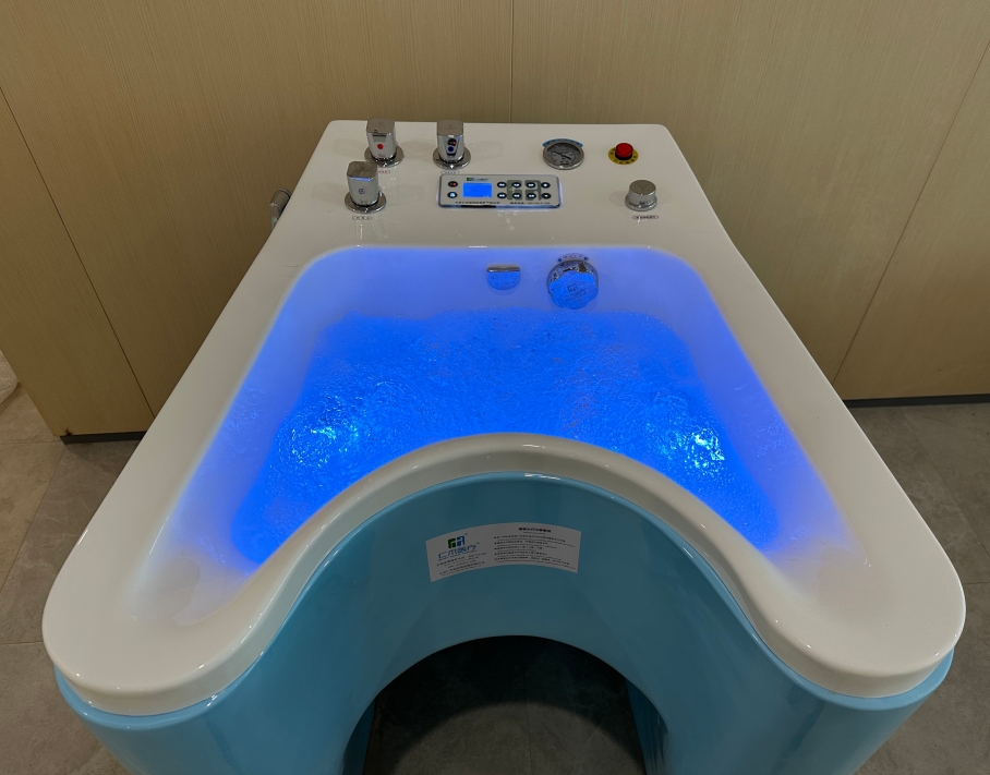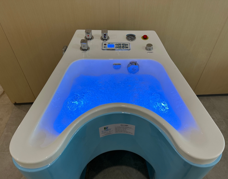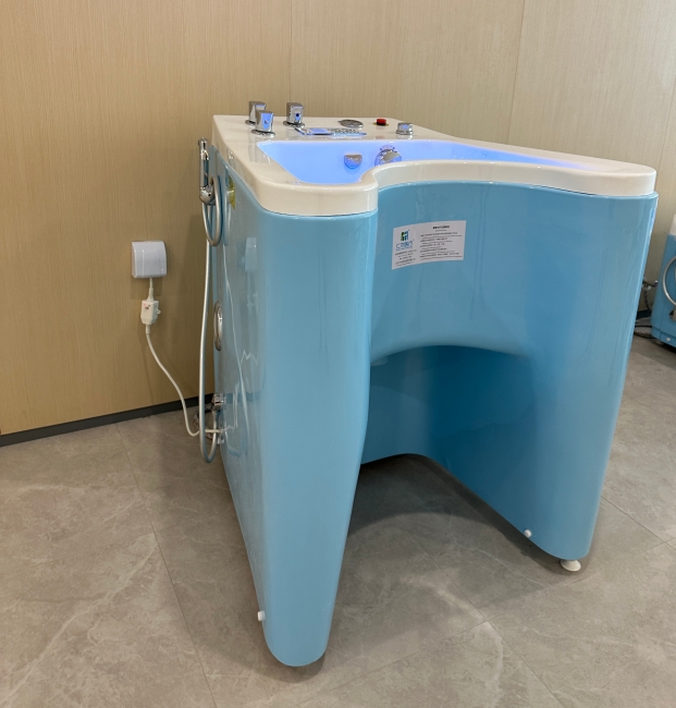 The upper limb vortex bubble bath features an integrated acrylic molding design. Equipped with a waterproof LCD touchscreen panel, it ensures safety and convenience through automatic key-locking functionality. The triple-adjustable vortex and bubble system provides targeted massage for hand and elbow joints, while a heating rod maintains constant temperature for therapeutic warmth. The device incorporates ozone disinfection and connects to Bluetooth for music playback, enhancing patient comfort. A pressure shower and cleaning basin complete the setup. Ideal for hospital rehabilitation departments, wellness centers, and senior care facilities