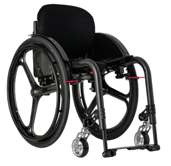 F1 ultra-light folding wheelchair is customized by experts for users. It is super light, easy to push, comfortable to sit, and can be easily stored in car trunks or airplane luggage racks taking minimum space. The frame folds in 1 action, while the wheels feature quick-release axle. When folded and remove the wheels, the frame can pass through airport security scanners. F1 has adjustable seating positions and versatile accessories. Its carbon fiber components help reduce weight and improve performance. The compact yet stable folding mechanism reduces frame size while maintaining stability comparable to fixed-wheel wheelchairs.