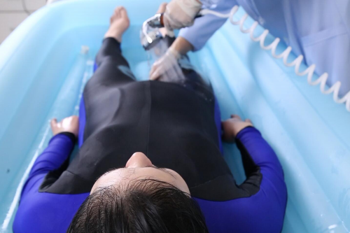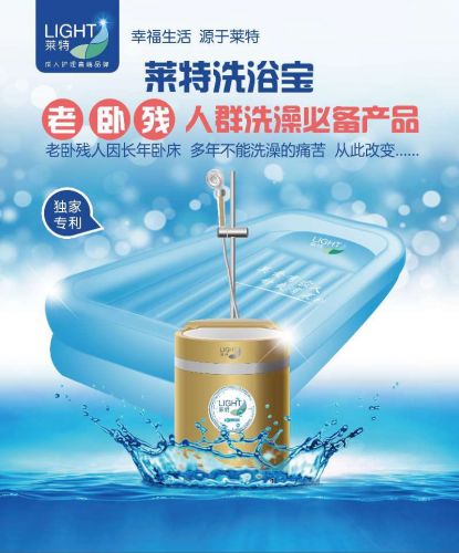 Bath Baby: designed for old, lying, disabled, pregnant people, change the traditional scrub mode, feel the comfort of the shower. Safety: the shower machine is equipped with battery function, power can be used. Convenience: no need to move the user, in their own bed to solve the bath. The bath bed can be folded, covers a small area, a person can operate. Health: with the flow of water bath, shampoo, wash buttocks will not be secondary pollution. Cost: only 1 kilowatt-hour per day, thoroughly clean the whole body. Patent Certificate products, state-level testing reports, CE certification, won the 2018 China International well-being Expo ECA Silver Award for innovative products