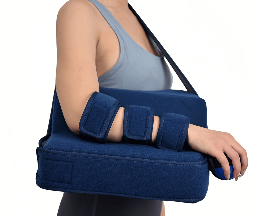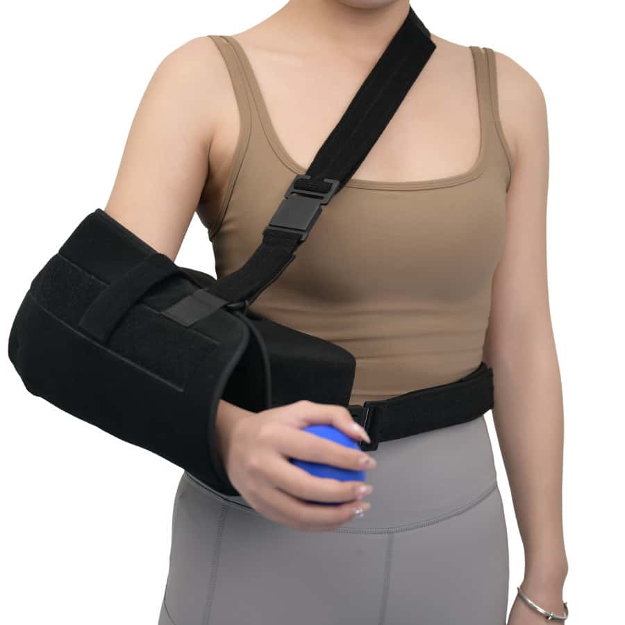 Indications: Postoperative immobilization following rotator cuff tendon repair, glenohumeral joint dislocation or subluxation,shoulder joint instability. Features: 1.Ergonomically designed contoured foam padding ensures comfortable wear. 2.Include a rehabilitation grip ball to enhance therapeutic exercises. 3.Widened hook&kloop shoulder straps and waist belt design prevent tightness and ensure acomfortable fit. 4.Detachable foam padding and straps faciliate easy cleaning.