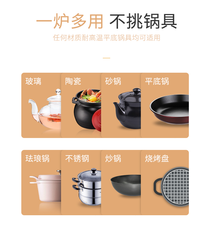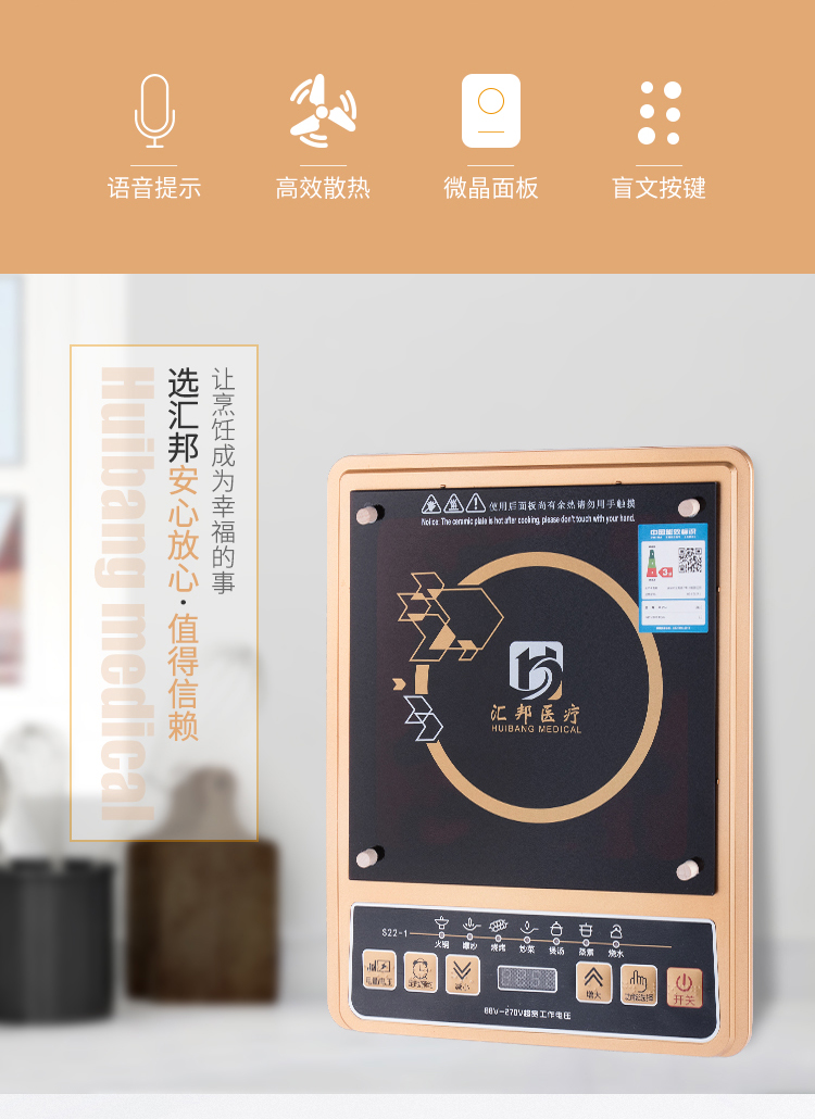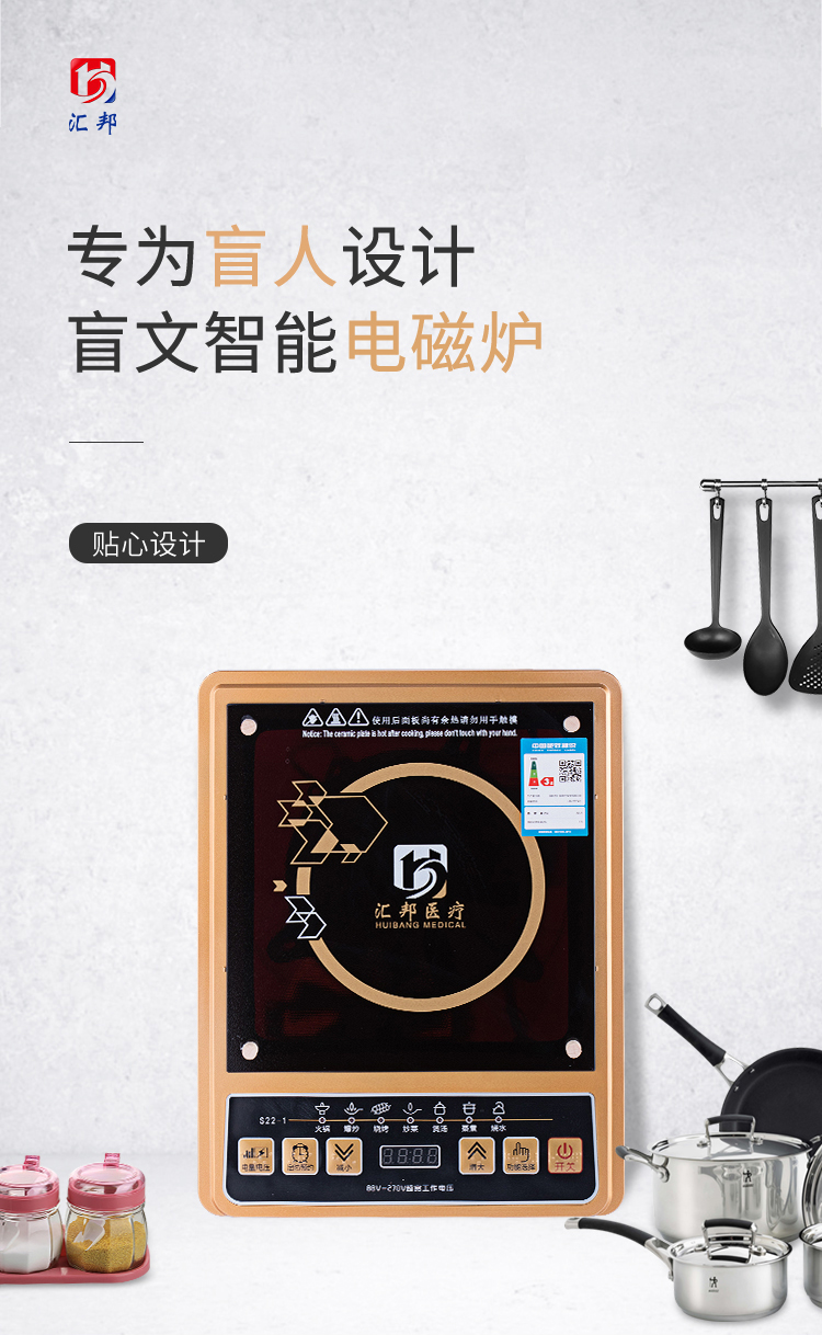 每一個(gè)操作按鍵都具有語(yǔ)音報(bào)讀功能和盲文點(diǎn)標(biāo)識(shí);具有“無(wú)鍋具”的安全提醒。反復(fù)提醒無(wú)鍋具后自動(dòng)斷電關(guān)機(jī),安全保護(hù);具有6個(gè)操作按鍵:功能選擇鍵、減小鍵、增大鍵、開關(guān)鍵、定時(shí)預(yù)約鍵、電量電壓查詢鍵;具有火鍋、爆炒、燒烤、炒菜、煲湯、蒸煮、燒水、預(yù)約、定時(shí)九大功能,增大、縮小鍵可讀報(bào)相應(yīng)溫度數(shù)。