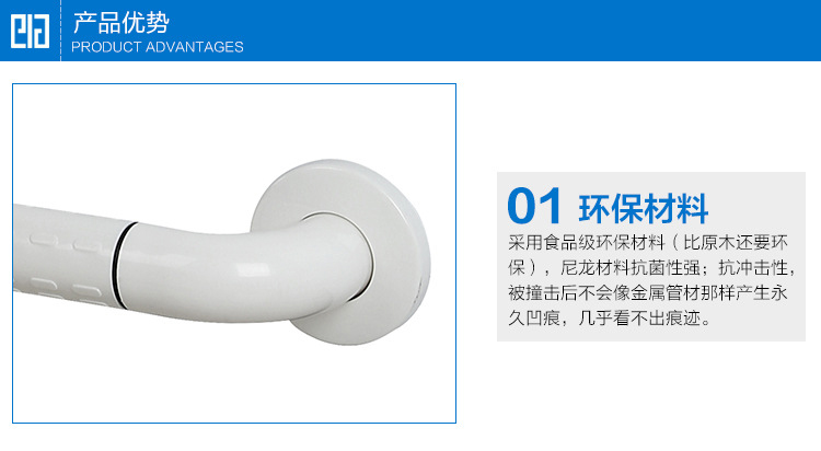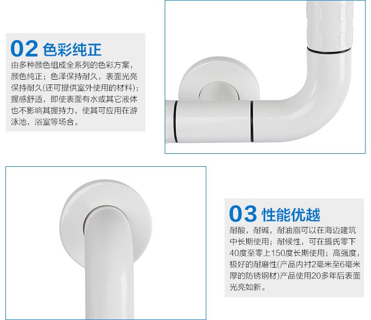 采用4mm厚度的高品質德國尼龍材料,內襯采用304不銹鋼管或優(yōu)質鋁合金組成;有抗菌、防火、耐磨、耐酸、耐堿、耐油脂及防滑等性能;表面有防滑浮點,產品是能達到食品級的環(huán)保材料;有抗沖擊型,產品表面撞擊后不會像金屬管材產生凹痕,不會有任何傷痕;有耐溫性,可以在攝氏零下四十度到零上五十度中長期使用,可為客戶提供配色服務,色彩多樣,整潔美觀,使墻面充滿活力,保養(yǎng)方便、持久耐用。