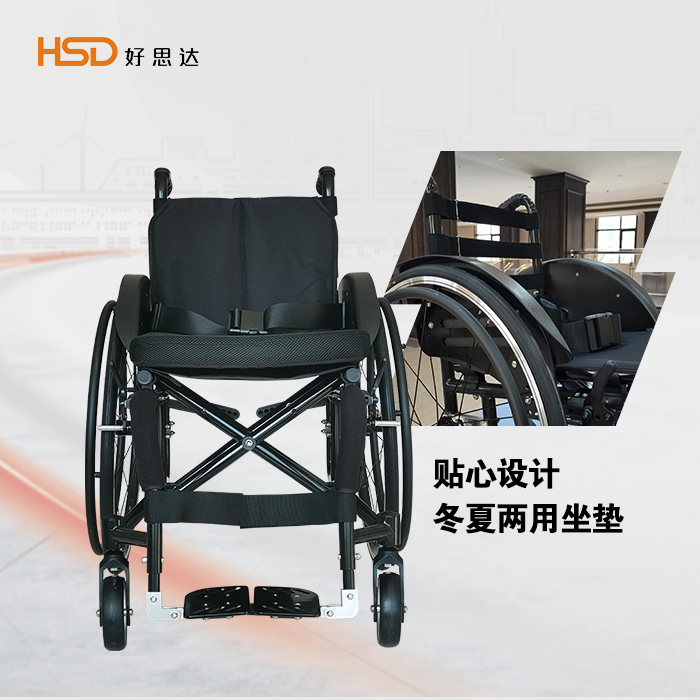 整車鋁合金車架,工字鋼直徑=25mm,壁厚=2.5mm;腳踏板可翻起;坐寬38,40,43可選;后輪24寸氣胎,能有效減震,使用舒適。通過按壓輪圈中間按鈕,可輕松拆卸輪胎,方便外出攜帶;車架可快速折疊,占用空間小。特設(shè)加強(qiáng)型低位護(hù)板,給上肢更大的活動空間,方便上下輪椅。坐墊采用加厚海綿,透氣網(wǎng)格布料,讓乘客舒適、安心。