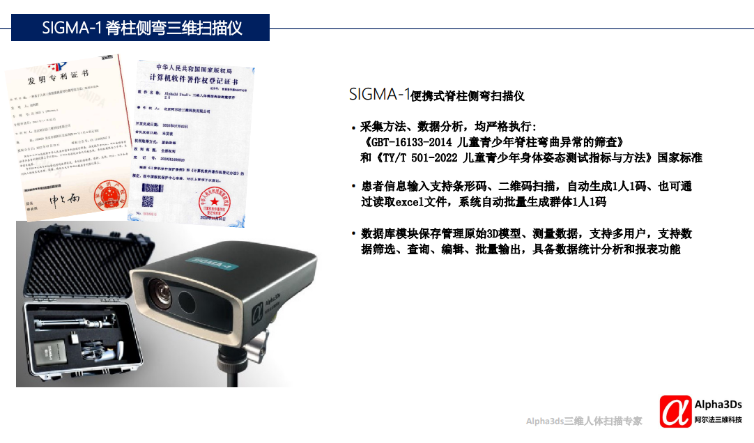 阿爾法三維科技是專注于三維人體掃描技術(shù)的科技企業(yè),致力于三維人體掃描的硬件軟件開發(fā),產(chǎn)品擁有全部自主知識產(chǎn)權(quán),涵蓋核心算法,采集控制,結(jié)構(gòu)和外觀設(shè)計(jì)等;阿爾法擁有20年豐富的三維掃描和數(shù)據(jù)應(yīng)用經(jīng)驗(yàn),服務(wù)于人體工學(xué)前沿近70家客戶,涵蓋4大領(lǐng)域:①運(yùn)動生物力學(xué)和生命科學(xué),如運(yùn)動體態(tài)分析、基因表型組研究;②康復(fù)疾病預(yù)防,如康復(fù)器材開發(fā),職業(yè)病預(yù)防;③人機(jī)工程,如汽車、飛行器設(shè)計(jì);④服裝設(shè)計(jì),如量身定制