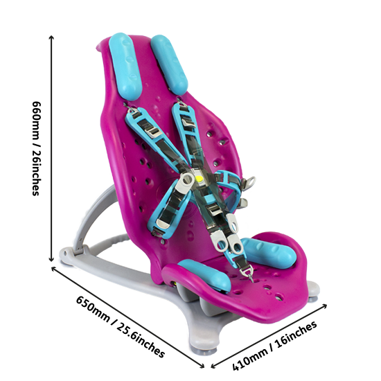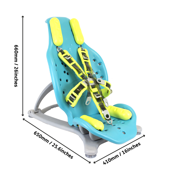 一款可攜帶的洗澡椅,提供特殊兒童洗浴時,頭部和軀干重要的支撐,讓孩子的洗浴時光變得好玩又簡單! • 座椅搭配軀干支撐帶,可依照孩子身體功能需求,可調(diào)整5點式或3點式軀干支撐帶 • 搭配角度調(diào)節(jié)座椅架,26段角度可調(diào)節(jié) • 搭配4個獨立擺位墊 • Splashy 潑潑樂適用于年齡1-8歲的特殊兒童, 最大承重30公斤 • Splashy Big大潑潑樂適用于8-16歲兒童,最大承重55公斤