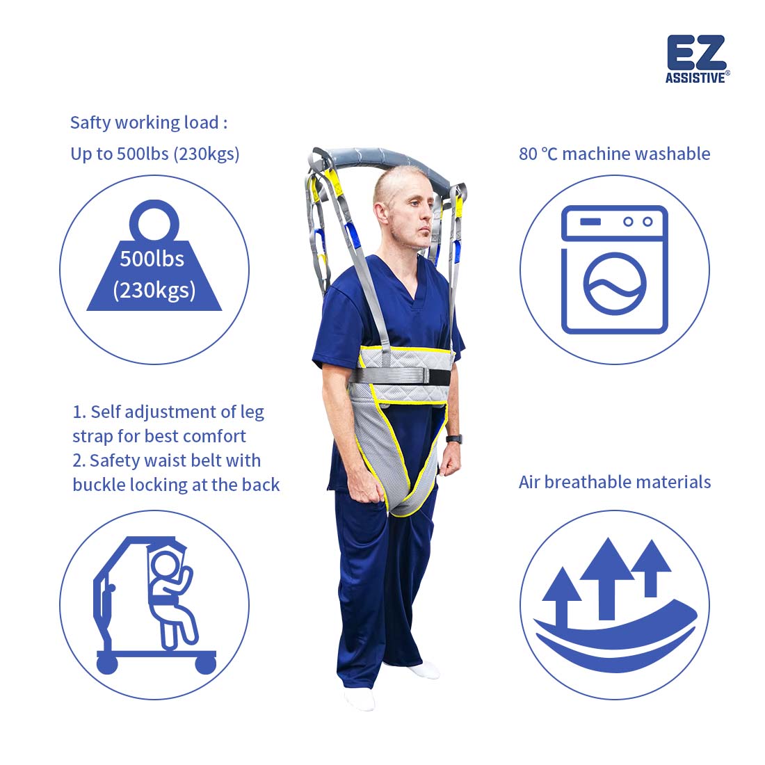 *當病人經(jīng)健康評估身體健康時, 吊帶適合步態(tài)運動。 *此吊帶提供穩(wěn)定的支持和充分的機動性 上半身,使個人能夠在康復(fù)中鍛煉 設(shè)置和環(huán)境。 *適應(yīng)個人的各種直立姿勢與 六個肩帶上的多個掛鉤。 *顏色編碼環(huán)帶高度姿勢調(diào)整。在那里 是不是在前面墊個墊子讓壓點分散一下 步態(tài)運動時的胸部。 *請要求男女共用,可根據(jù)要求提供。