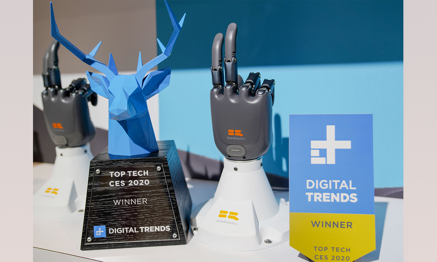 BrainRobotics智能仿生手,是一款腦機接口技術(shù)與人工智能算法高度整合的智能產(chǎn)品。這款仿生手可通過檢測佩戴者的神經(jīng)電和肌肉電信號,識別佩戴者的運動意圖,并將運動意圖轉(zhuǎn)化為智能仿生手的動作,從而做到靈巧智能,手隨心動。
