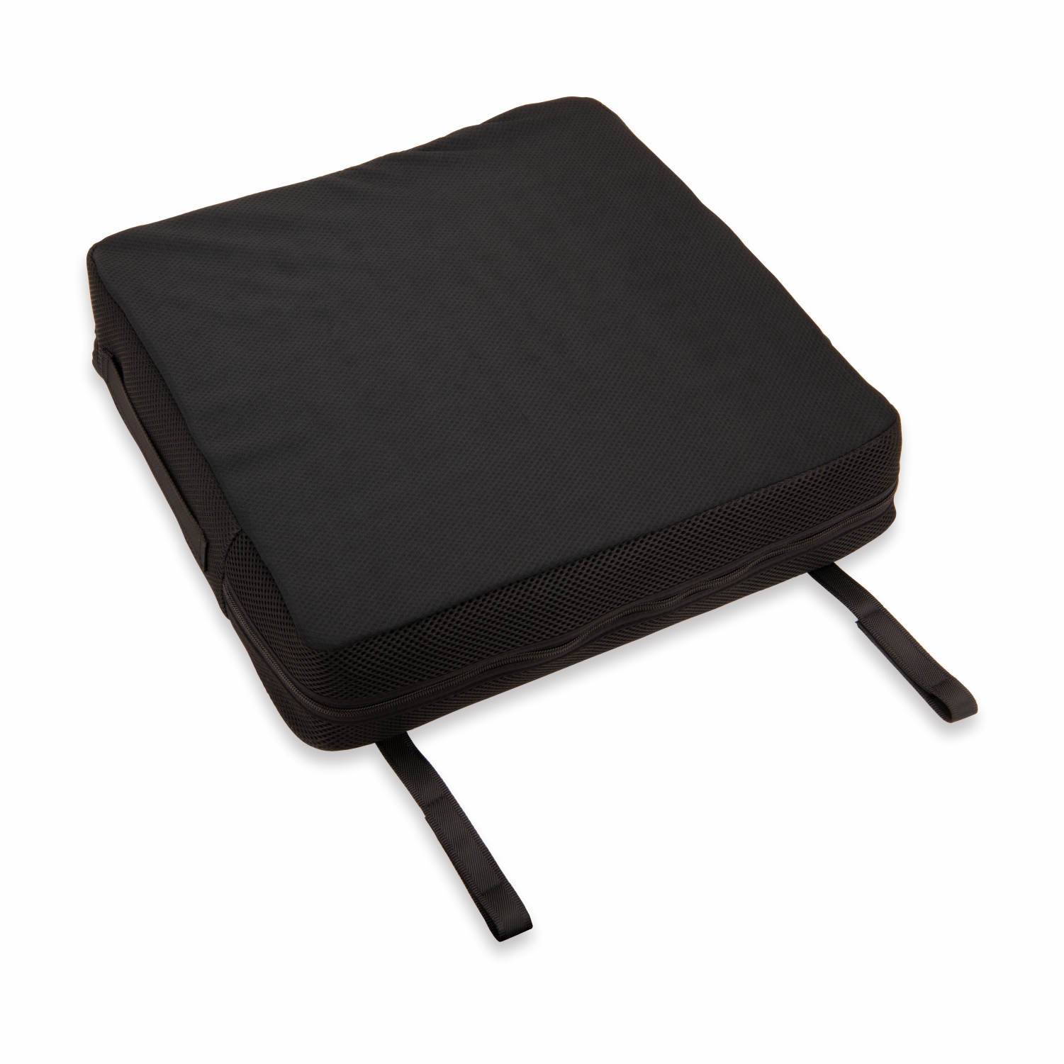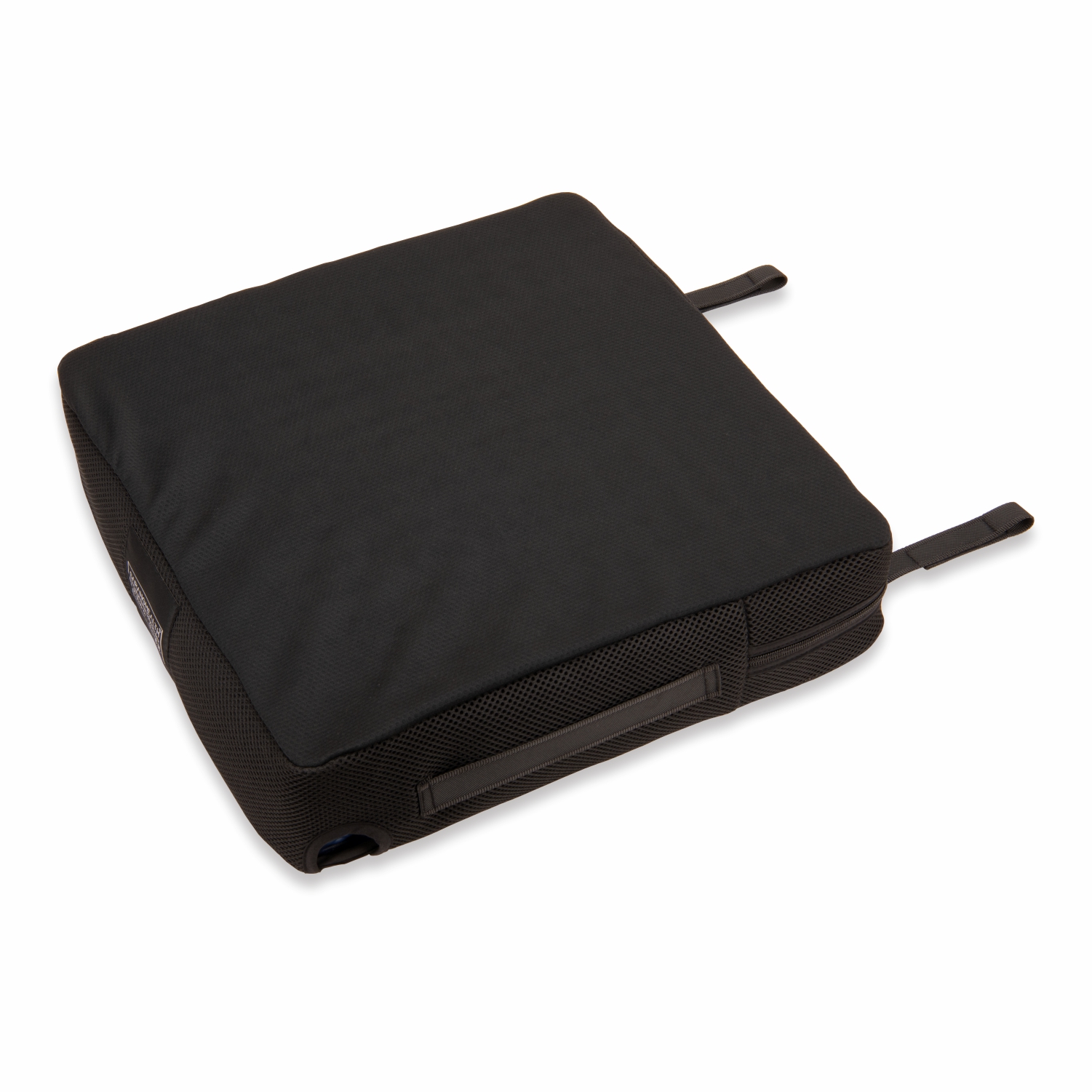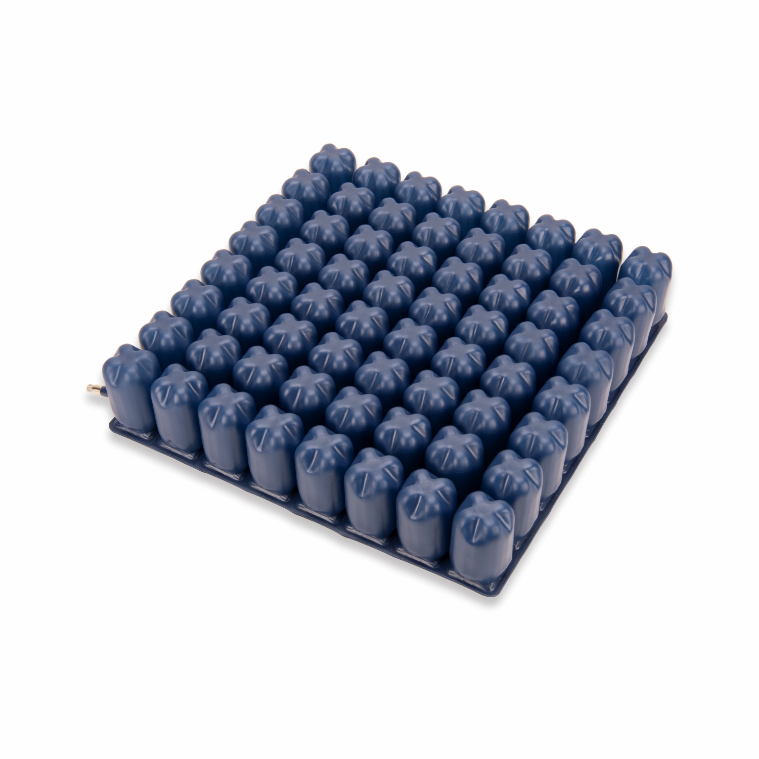 充氣坐墊采用環(huán)保PVC氣囊,內(nèi)置獨立氣囊,氣囊相互連通,易充氣和調(diào)節(jié),依據(jù)空氣流通卸壓原理,能有效預防壓瘡。左、右獨立氣室的雙氣嘴設置,不同的截癱患者左右臀部肌肉收縮程度的高低不同,可通過左、右氣嘴調(diào)節(jié)左、右獨立氣室內(nèi)的空氣量,使截癱患者得到最佳的舒適度及減壓平衡效果。坐墊套面層采用透氣滌綸面料,底部PVC防滑革,拉鏈設置易于清洗。多種尺寸、高度,適合不同輪椅使用者的需求。