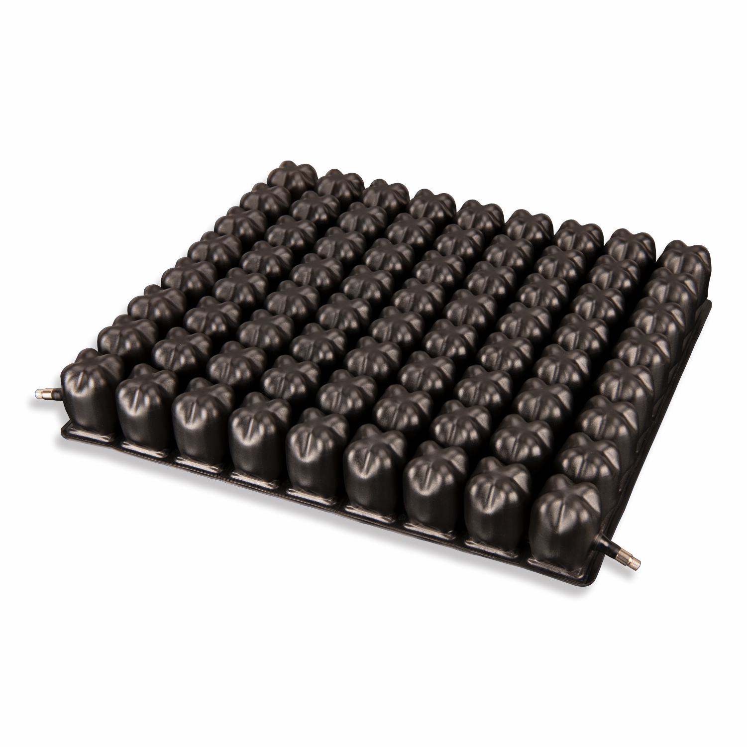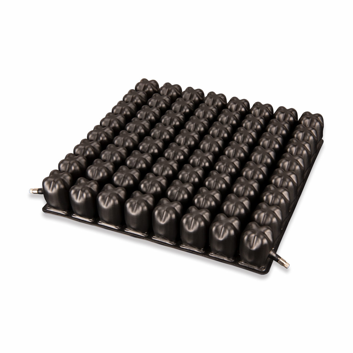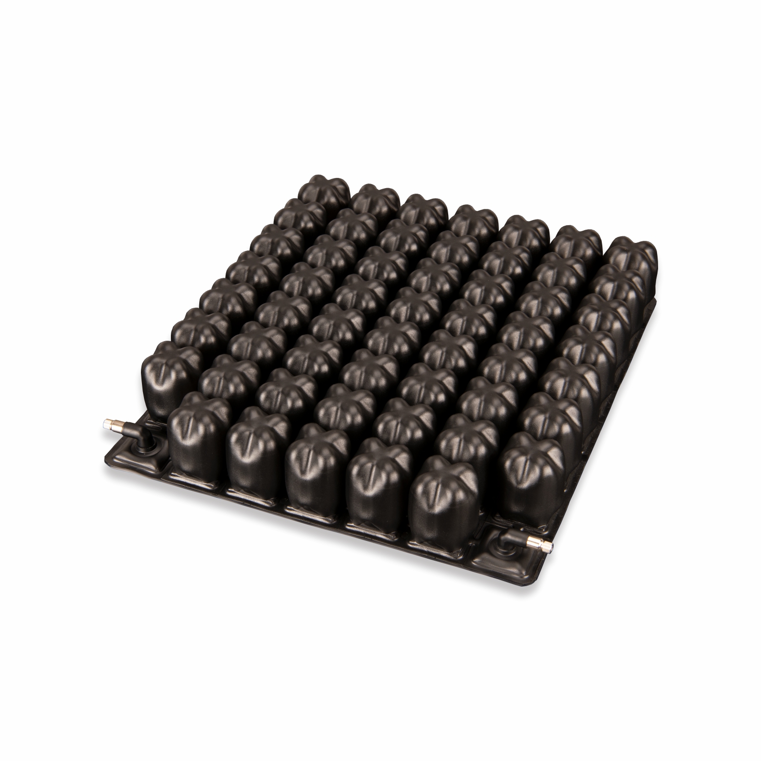 充氣坐墊采用環(huán)保PVC氣囊,內(nèi)置獨(dú)立氣囊,氣囊相互連通,易充氣和調(diào)節(jié),依據(jù)空氣流通卸壓原理,能有效預(yù)防壓瘡。左、右獨(dú)立氣室的雙氣嘴設(shè)置,不同的截癱患者左右臀部肌肉收縮程度的高低不同,可通過左、右氣嘴調(diào)節(jié)左、右獨(dú)立氣室內(nèi)的空氣量,使截癱患者得到最佳的舒適度及減壓平衡效果。坐墊套面層采用透氣滌綸面料,底部PVC防滑革,拉鏈設(shè)置易于清洗。多種尺寸、高度,適合不同輪椅使用者的需求。