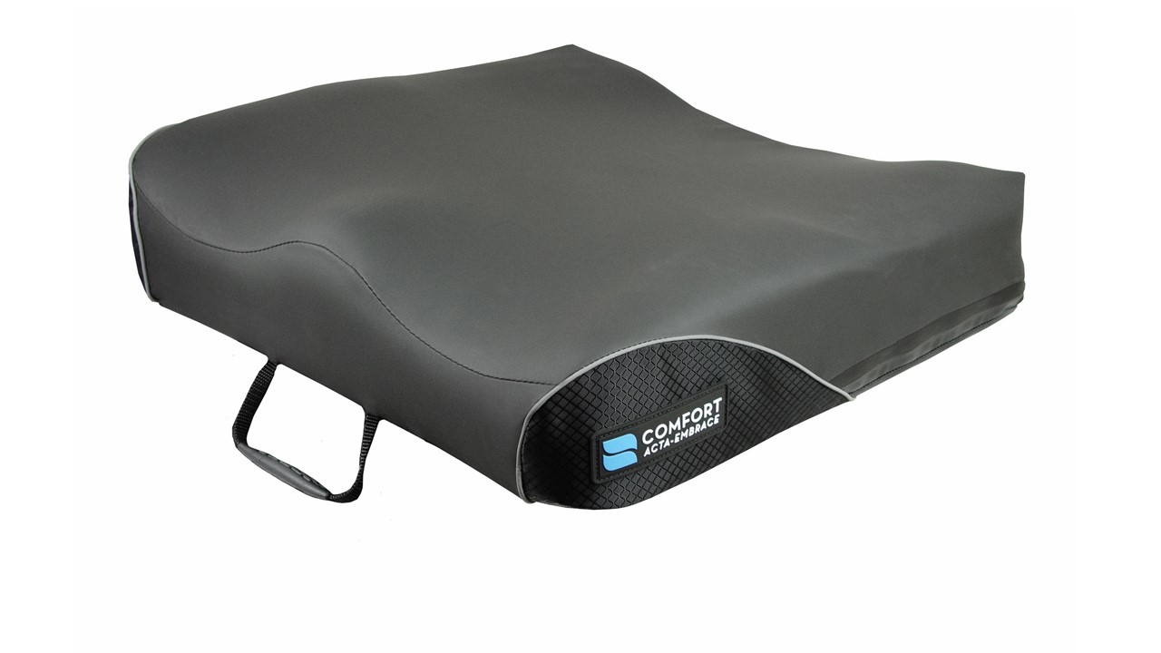 腿部凹陷區(qū),幫助坐姿正直; 兩側(cè)泡棉前窄后寬,以穩(wěn)定大轉(zhuǎn)子; 雙層泡棉,基底泡棉提供廓形支撐,上層記憶棉提供舒適及皮膚保護(hù); 坐墊底部采用防滑材質(zhì),并附有魔術(shù)貼,使坐墊固定于座椅上; 坐墊套四周為穩(wěn)定區(qū),骶尾部具有低剪切力區(qū)域