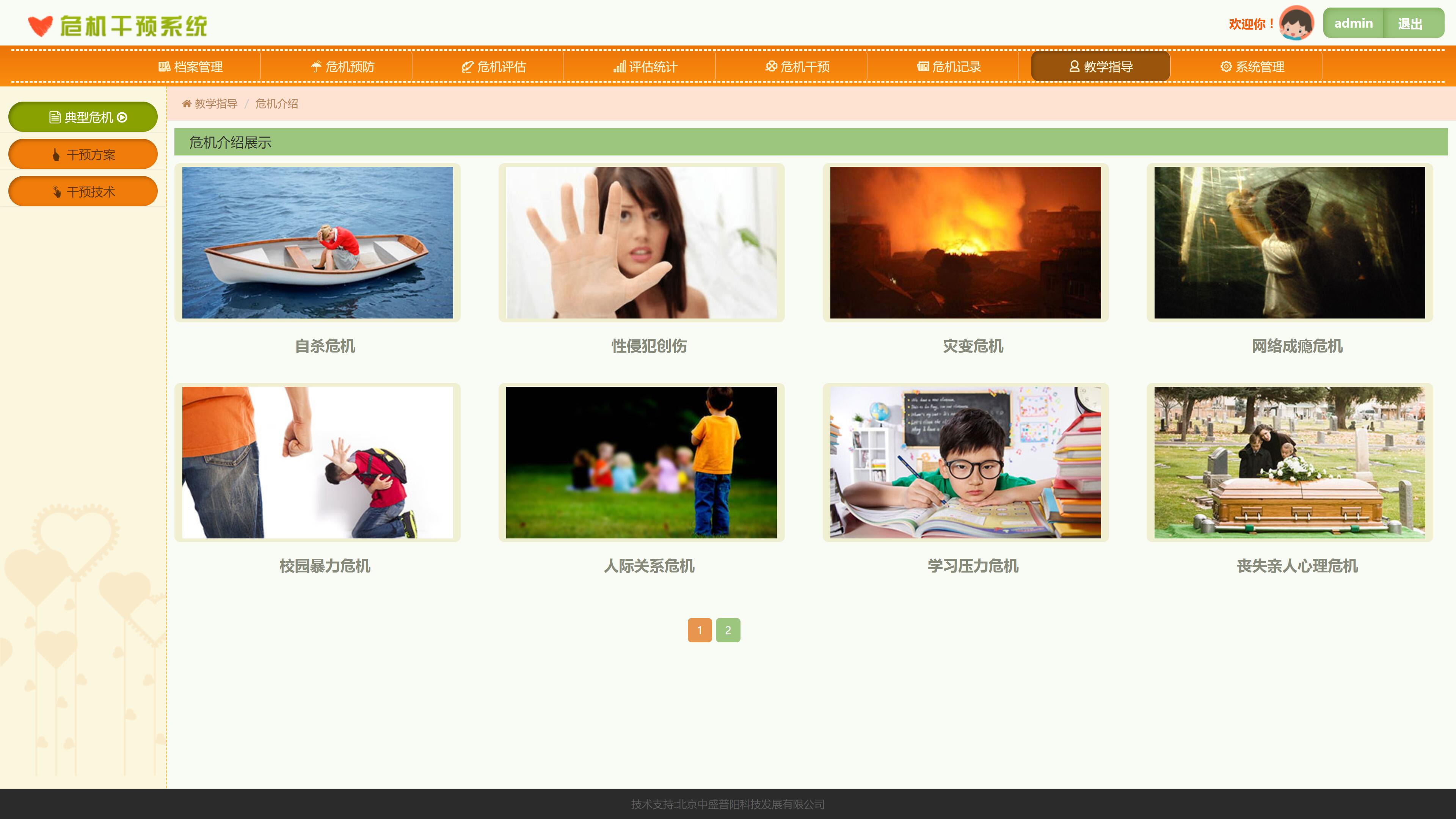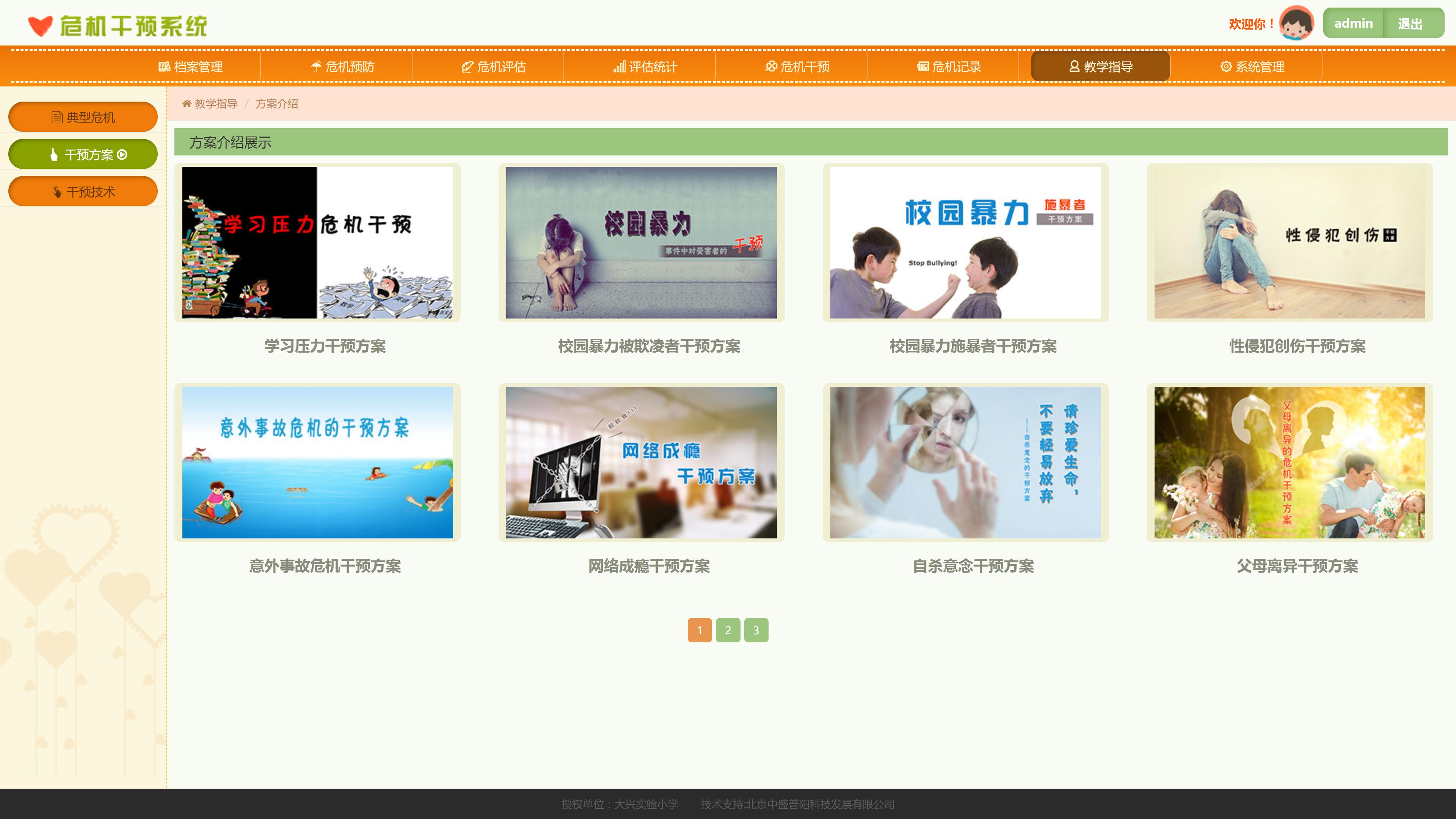 心理危機干預(yù)儀是一套集心理危機篩查、心理危機預(yù)防、心理危機干預(yù)三維一體的心理應(yīng)用產(chǎn)品。它以我國學(xué)校及社會上常見的自殺、校園欺凌、學(xué)業(yè)壓力、網(wǎng)絡(luò)成癮、意外傷害等十多種心理危機為主線索,以專業(yè)深入的心理輔導(dǎo)或治療方式進行個體或團體干預(yù)。心理教師或咨詢師通過使用系統(tǒng)的針對性干預(yù)方案,快速高效地幫助干預(yù)對象擺脫心理危機的困擾、恢復(fù)內(nèi)心平衡、提升心理健康水平。