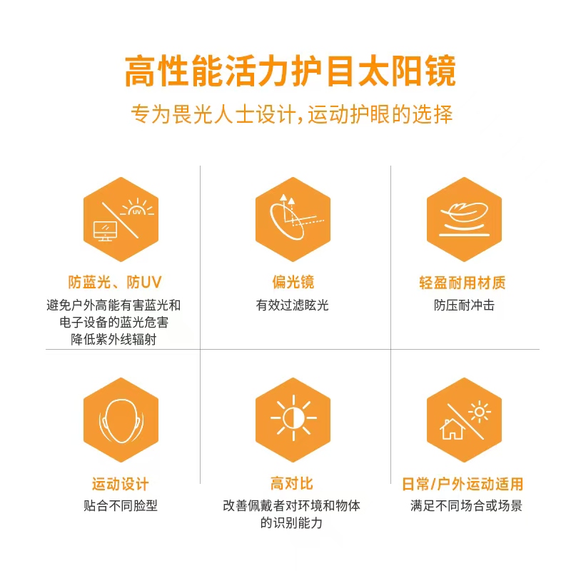 高性能活力護目太陽鏡 防藍光 防UV 偏光鏡 高對比鏡片