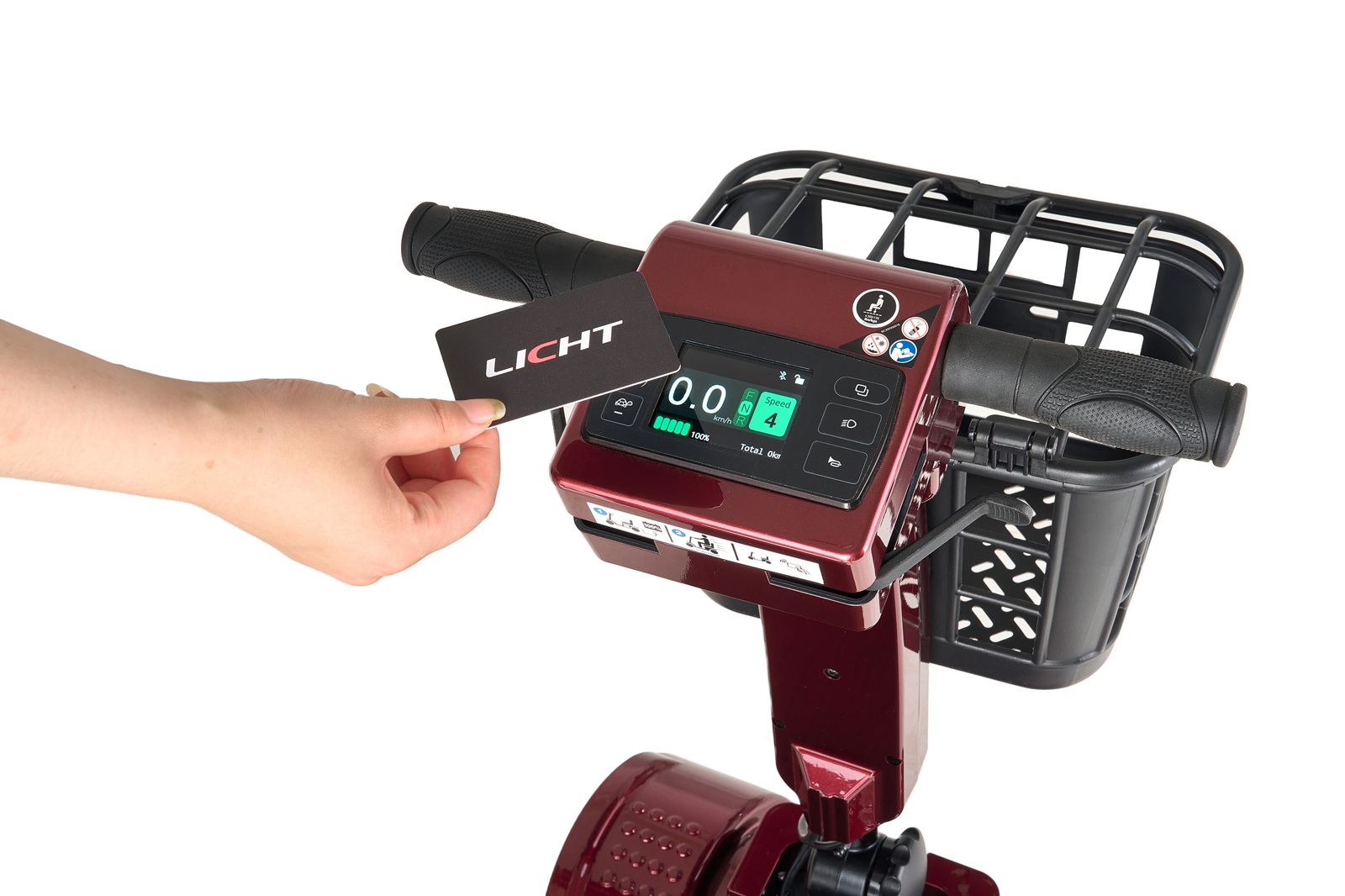在一代的基礎(chǔ)上,增加了電子顯示控制面板和感應(yīng)式開關(guān)。全新升級的電子顯示控制面板,集成了喇叭按鈕、燈光開關(guān),加速和減速按鈕,以及電池水平和速度信息的電子顯示屏。最簡化的操作設(shè)計,用戶無需插入或拔出鑰匙,只需刷一下卡即可離開。藍牙配對后,手機可用于感應(yīng)電源的開啟和關(guān)閉。