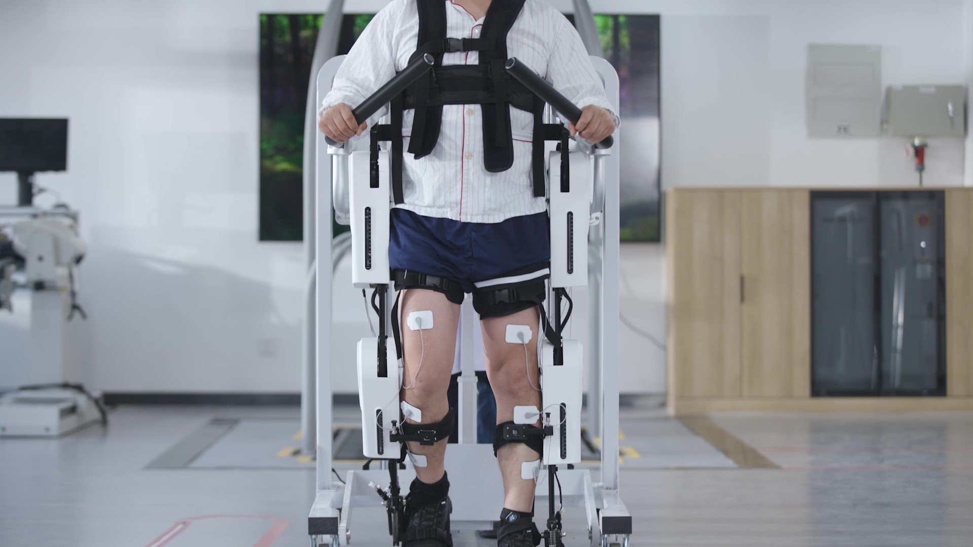 本系統(tǒng)整合了高性能腦狀態(tài)評估調(diào)控系統(tǒng)“神工-神機(jī)”和腦機(jī)接口神經(jīng)肌肉耦合驅(qū)動下肢康復(fù)外骨骼“神工-神行”,主要應(yīng)用于腦卒中康復(fù)領(lǐng)域,“神工-神行”可實(shí)時解碼大腦運(yùn)動意圖,實(shí)現(xiàn)患者自身意識驅(qū)動,融合自研發(fā)神經(jīng)肌肉電刺激與電機(jī)混合助行技術(shù),實(shí)現(xiàn)主動式閉環(huán)康復(fù)訓(xùn)練, “神工-神機(jī)”融合BCI+TMS+FES技術(shù),可實(shí)時評估大腦狀態(tài)并驅(qū)動中樞-外周雙端刺激設(shè)備,有效激活大腦及其支配的神經(jīng)群,提升康復(fù)效率。