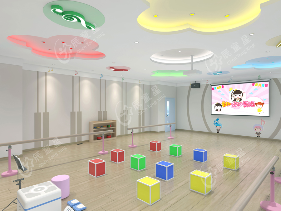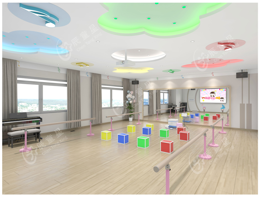 音樂律動室是聽障、盲障、智力障礙學(xué)生進行舞蹈、體操、游戲、音樂教學(xué)及其它藝術(shù)活動的場所,其環(huán)境設(shè)計有利于特殊學(xué)生通過視覺和殘余聽力模仿動作、感受舞蹈的音樂節(jié)奏。律動教室通過訓(xùn)練學(xué)生的視、聽、觸等綜合能力,使其注意力、記憶力、感知力、結(jié)構(gòu)化能力得到加強。