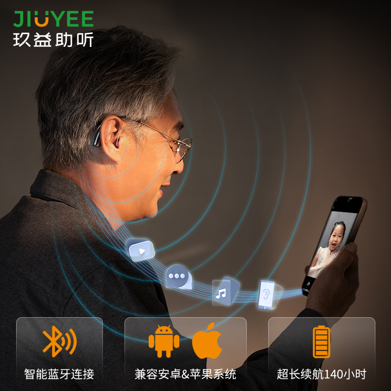 玖益醫(yī)療級(jí)智能藍(lán)牙耳背式助聽器(RIC P4 大功率) 適合中重至部分極重度聽損,采用玖益獨(dú)創(chuàng)“三芯系統(tǒng)技術(shù)”、75dB滿檔增益,135dB最大聲壓級(jí) ,64通道WDRC及AI降噪技術(shù)、智能驗(yàn)配APP及遠(yuǎn)程驗(yàn)配、居家5-8分鐘可完成測(cè)聽和驗(yàn)配,IP67防水,140小時(shí)長(zhǎng)續(xù)航,暢享舒適溝通。