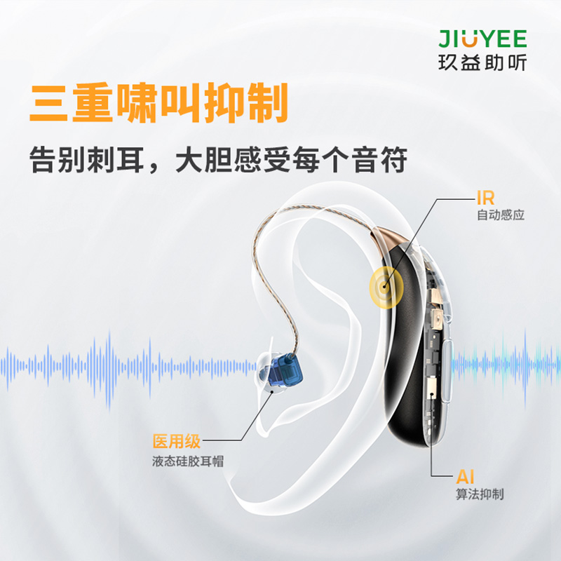 玖益醫(yī)療級智能藍(lán)牙耳背式助聽器(RIC P2 特大功率) 適合重至極重度聽損,采用玖益獨創(chuàng)“三芯系統(tǒng)技術(shù)”、80dB滿檔增益,140dB最大聲壓級 ,64通道WDRC及AI降噪技術(shù)、智能驗配APP及遠(yuǎn)程驗配、居家5-8分鐘可完成測聽和驗配,IP67防水,140小時長續(xù)航,暢享舒適溝通。