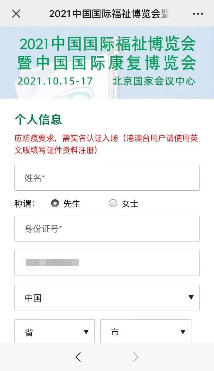 Step 1:識別下方二維碼,填寫參觀登記信息,完成預登記,并截圖您的個人預登記二維碼。(或關注微信公眾號“中國國際福祉博覽會”,點擊菜單欄【我要參觀】)