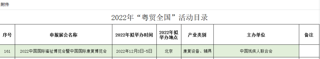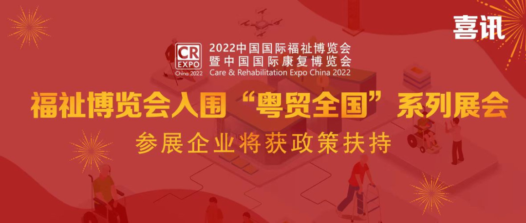 廣東省商務廳近日公布2022年“粵貿全國”名錄,經(jīng)申報及專家評審,2022中國國際福祉博覽會暨中國國際康復博覽會(CR EXPO)成功入圍2022年“粵貿全國”系列展會!