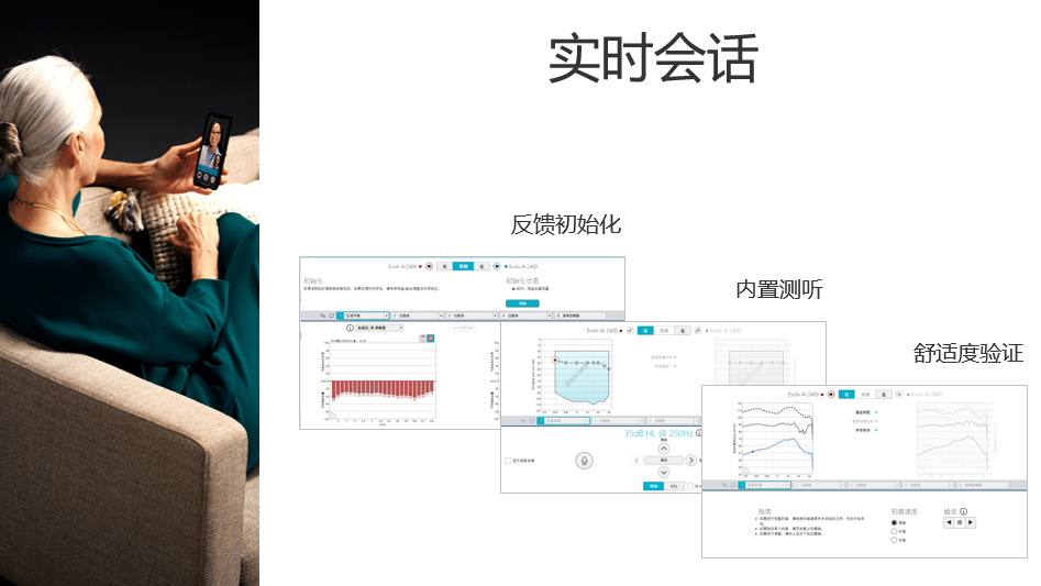 分享會上李伯陽指出目前我國聽力現(xiàn)狀的痛點和現(xiàn)狀,并基于此提出了“自調節(jié)+遠程配驗”技術的機遇和挑戰(zhàn)。同時也為我們分享了臨床案例分析,從而證實了該技術的可行性與優(yōu)勢,使聽力受損患者能夠足不出戶便能與調配師全程溝通,讓聆聽變得更具智慧。