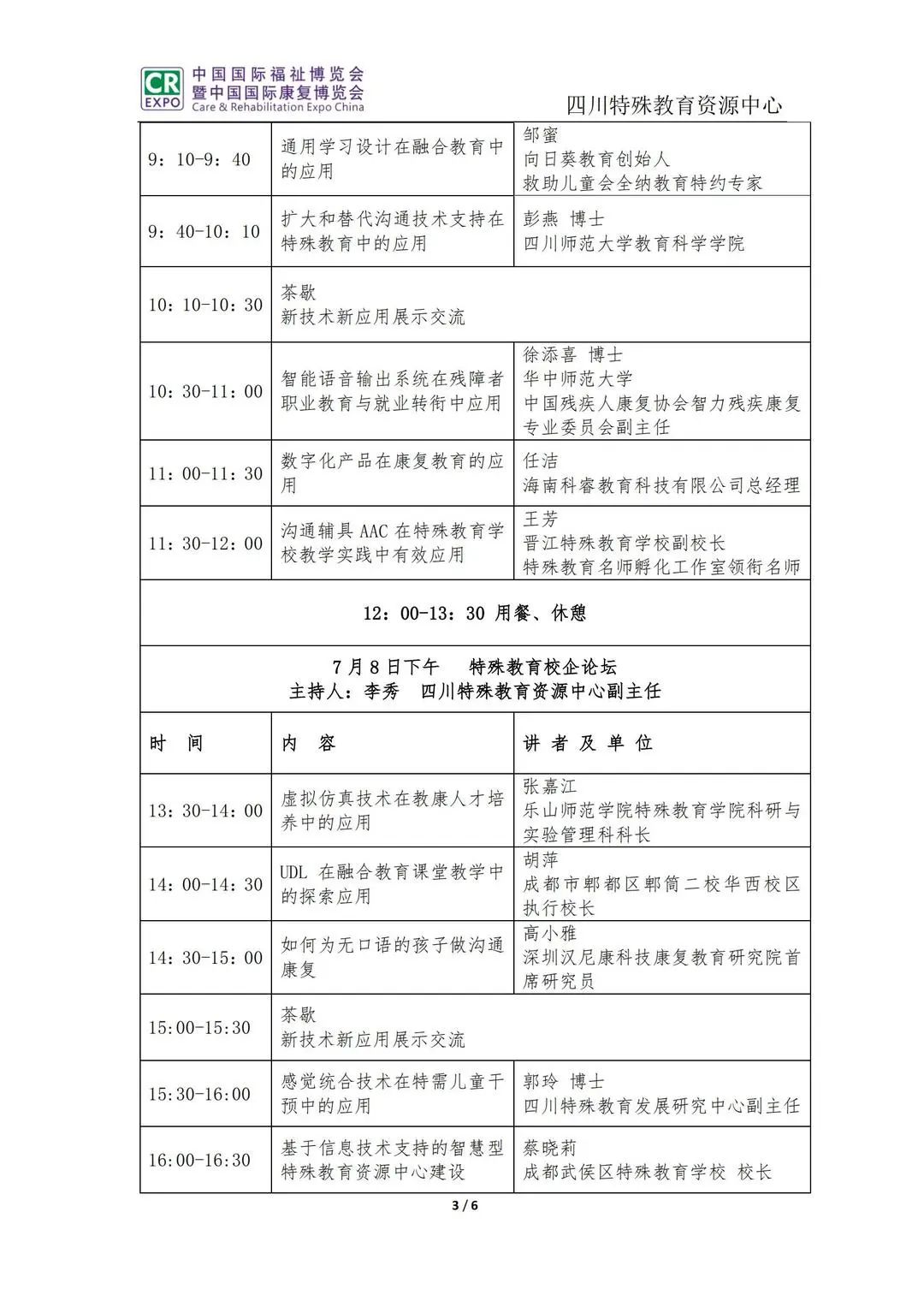 7月8日下午 特殊教育校企論壇 主持人:李秀 四川特殊教育資源中心副主任 |