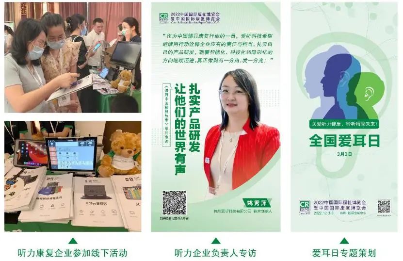 深入聽力康復(fù)行業(yè)一線,展會(huì)在全年度推出一系列相關(guān)活動(dòng),密切聯(lián)系專家學(xué)者及企業(yè)精英,為聽力企業(yè)搭建產(chǎn)、學(xué)、研、用交流平臺(tái)。此外還推出全國愛耳日專題科普,展示助聽器、人工耳蝸、聽力檢測設(shè)備等解決方案,幫助聽障群體開啟有聲世界;推出線上線下供需采購渠道,助推聽力企業(yè)加快布局市場。