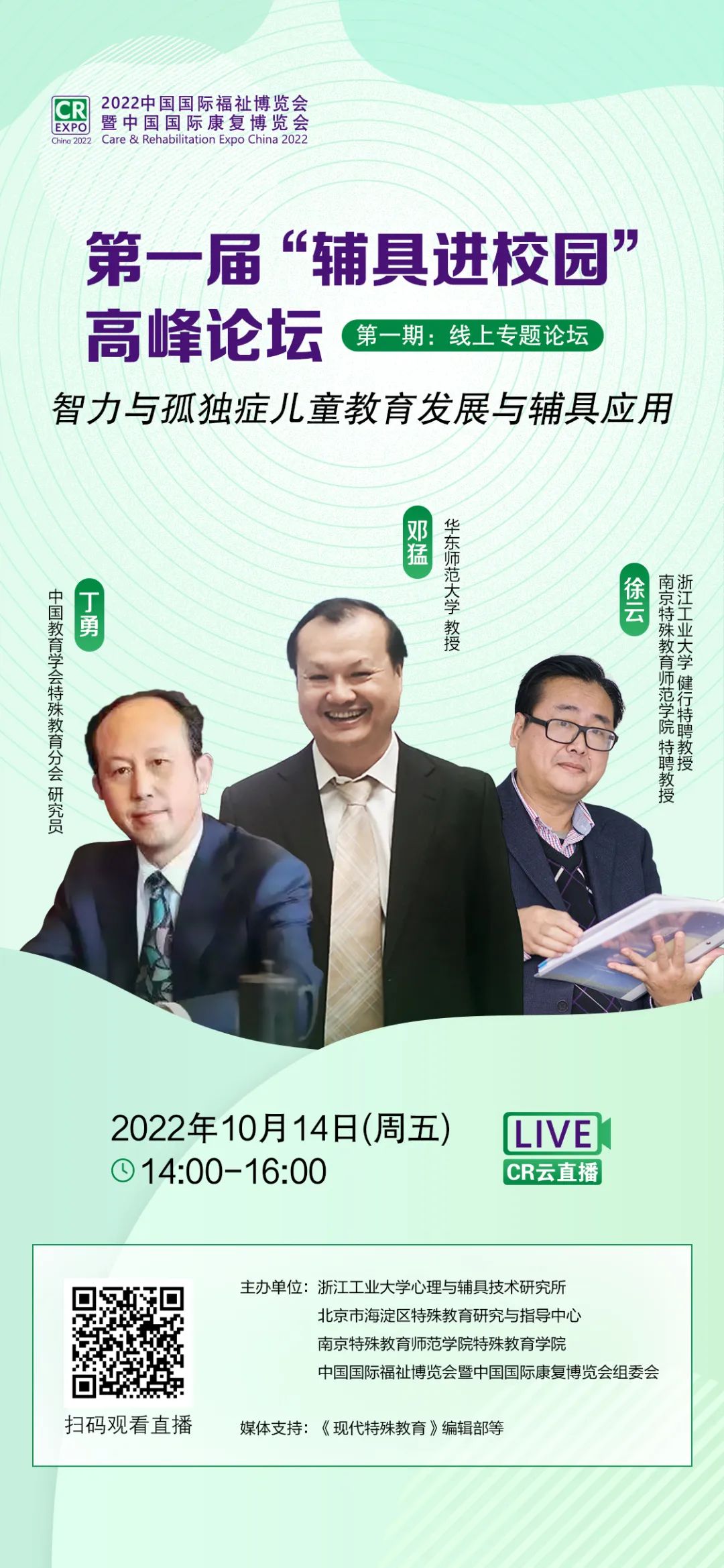 10月21日直播 | “輔具進(jìn)校園”高峰論壇第二期開(kāi)講!共探輔具和特殊兒童教育前沿