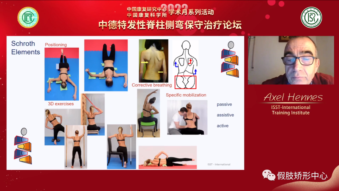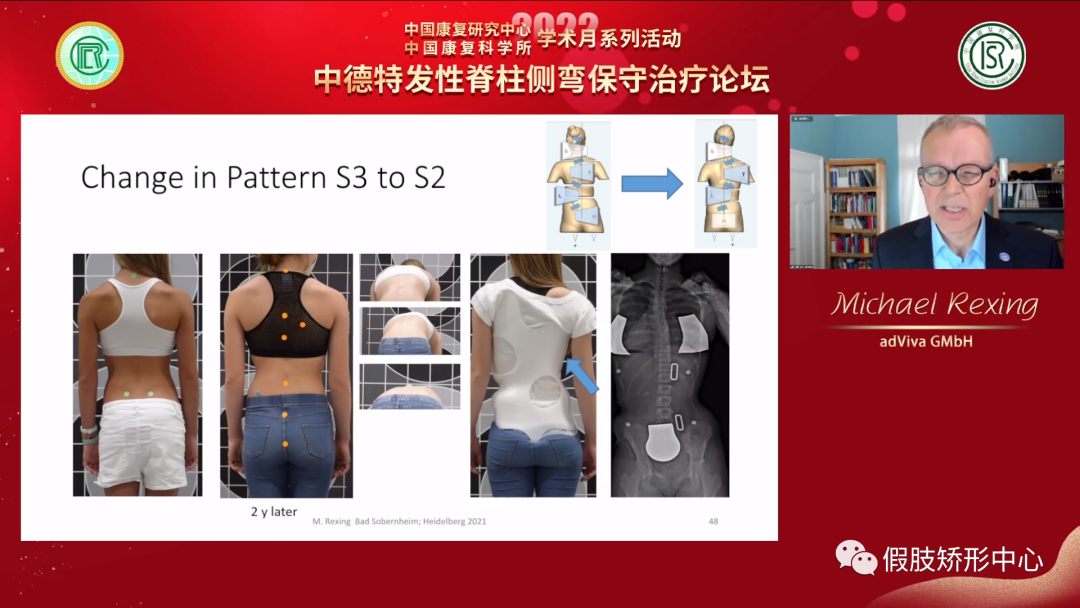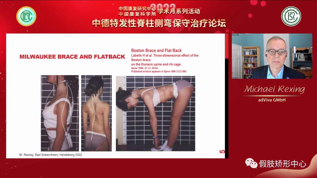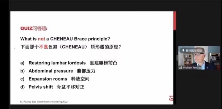 Michael Rexing教授主要講述了色努脊柱側(cè)彎矯形器的基本原理以及發(fā)展歷程,矯形器分型及使用,在臨床中使用體操治療和矯形器治療相結(jié)合,為患者提供更好的治療效果。