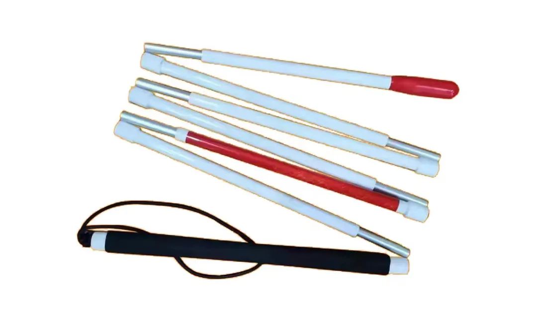 盲杖采用超輕碳纖維材料,僅重100g。手柄結(jié)構(gòu)設(shè)計適合盲杖使用中正確握持,手柄上端裝有彈性腕帶,不易從手中滑落。折疊連接部件連接牢固,具有防松動裝置。整杖彎曲15~20°后可自行復(fù)原。七節(jié)折疊,折疊和打開及使用安全,無卡滯現(xiàn)象。杖尖適合在水泥、瀝青、磚質(zhì)等硬質(zhì)路面上使用,易更換。適用于低視力、一/二級盲和全盲人群。