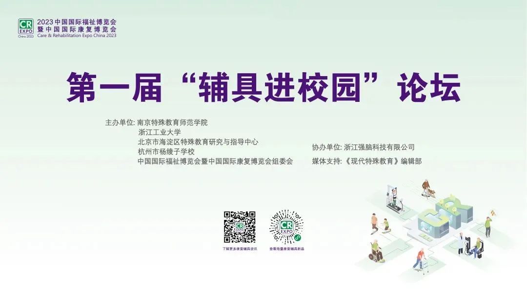 2022年8月9日,中國殘聯(lián)、教育部聯(lián)合發(fā)布《輔助器具進(jìn)校園工程實(shí)施方案》,該方案明確指出“輔助器具是殘疾人克服障礙、改善功能,提高獨(dú)立生活、學(xué)習(xí)和工作能力的重要手段”。專業(yè)化、現(xiàn)代化的輔助器具成為殘疾兒童進(jìn)入校園、適應(yīng)班級(jí)、融入課堂的強(qiáng)有力保障。為深入貫徹落實(shí)黨中央要求,為殘疾學(xué)生提供科學(xué)的輔助器具設(shè)配和相關(guān)服務(wù),提高殘疾兒童學(xué)習(xí)和生活的便利與有效性,提升融合教育質(zhì)量,推動(dòng)特殊教育高質(zhì)量發(fā)展,第一屆“輔具進(jìn)校園”論壇正式啟動(dòng)。本屆論壇由南京特殊教育師范學(xué)院、浙江工業(yè)大學(xué)、北京市海淀區(qū)特殊教育研究與指導(dǎo)中心、杭州市楊綾子學(xué)校和中國國際福祉博覽會(huì)暨中國國際康復(fù)博覽會(huì)組委會(huì)聯(lián)合主辦,浙江強(qiáng)腦科技有限公司協(xié)辦,《現(xiàn)代特殊教育》雜志編輯部給予媒體支持。