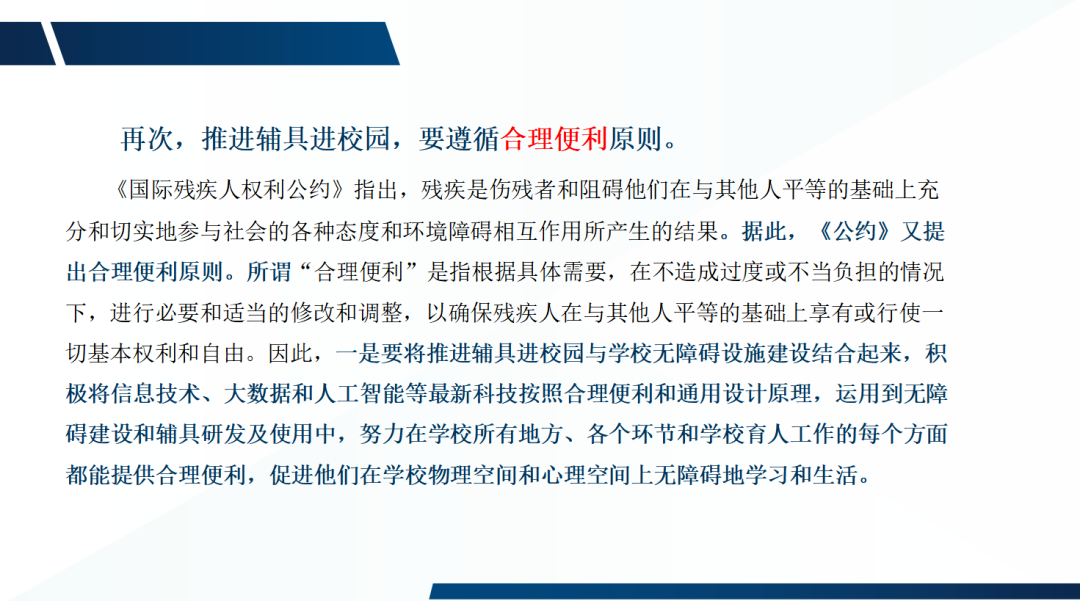丁勇研究員作《高質(zhì)量發(fā)展視野下輔具進(jìn)校園的思考》主題發(fā)言。他指出,推進(jìn)輔具進(jìn)校園,目的就是要促進(jìn)特殊教育高質(zhì)量發(fā)展;推進(jìn)輔具進(jìn)校園,核心任務(wù)就是要提高育人質(zhì)量;推進(jìn)輔具進(jìn)校園,要堅(jiān)持素養(yǎng)導(dǎo)向與適合原則、合理便利原則。