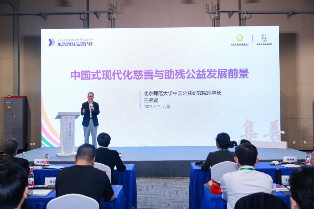 主旨演講環(huán)節(jié),北京師范大學(xué)中國公益研究院理事長王振耀以《中國式現(xiàn)代化慈善與助殘公益發(fā)展前景》為題進(jìn)行主旨演講,他指出,中國的公益事業(yè)正處于快速發(fā)展的階段,推動(dòng)和實(shí)現(xiàn)助殘公益現(xiàn)代化需要政府、社會(huì)組織、企業(yè)等多方的共同努力。只有通過各方面的支持和合作,才能夠?qū)崿F(xiàn)助殘公益事業(yè)的現(xiàn)代化和可持續(xù)發(fā)展。