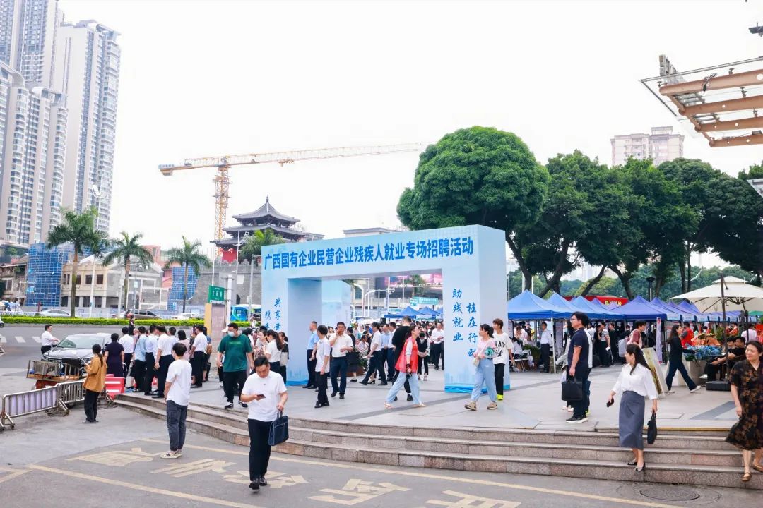 5月16日,“助殘就業(yè) 桂在行動(dòng)”廣西國有企業(yè)民營企業(yè)殘疾人專場招聘會(huì)在廣西南寧舉行。40家國有企業(yè)、民營企業(yè)提供超500個(gè)適殘崗位。