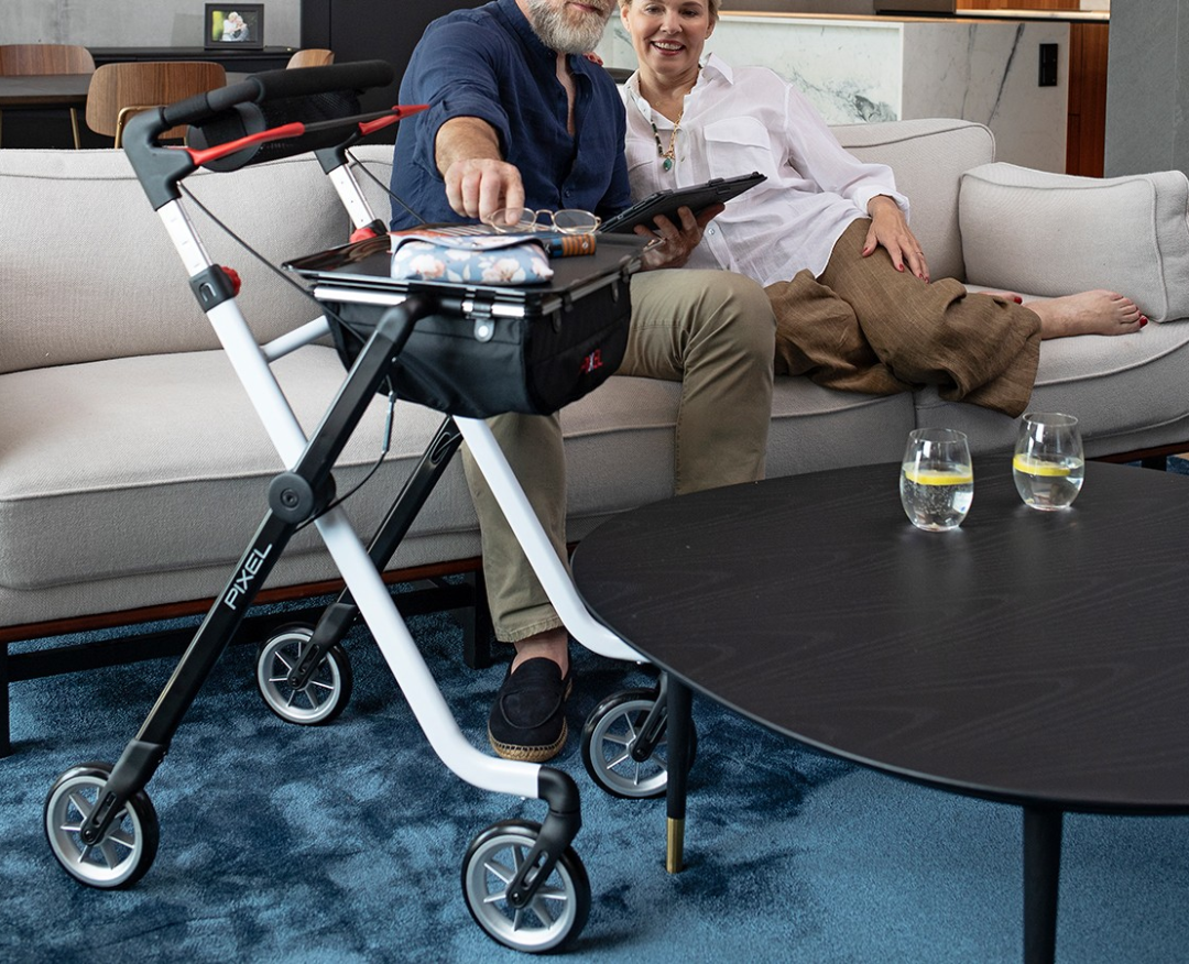 瑞格-皮克斯是專為室內(nèi)使用而設(shè)計(jì)的助行器。獨(dú)特的雙色X型邊框,簡約時(shí)尚。小而輕巧的車身,搭配減震軟輪,使整車可以輕松跨越障礙物。大托盤實(shí)用性高,可以作為邊桌使用,邊框巧妙的設(shè)計(jì)使皮克斯可以輕松的在床、沙發(fā)和餐桌等家具下方滑動(dòng)。也可以把托盤拆卸下來,當(dāng)做餐盤使用。