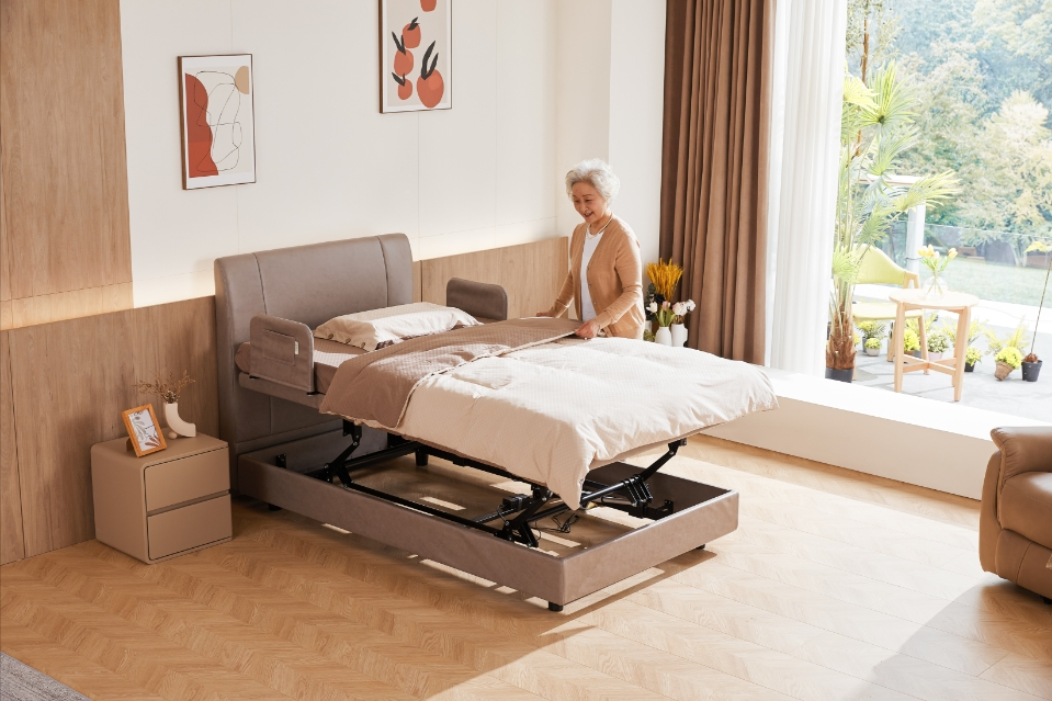 舒眠H921屬于適老化電動(dòng)床,單人1.2米寬度尺寸,更加舒適。具備背部升降、腿部升降和整床升降,可滿足老人日常起居,方便上下床;以及后期處于護(hù)理階段,也方便家人照護(hù)。兩側(cè)扶手,便于抓握和儲(chǔ)物,后期根據(jù)老人需求,也可升級(jí)長(zhǎng)護(hù)欄。