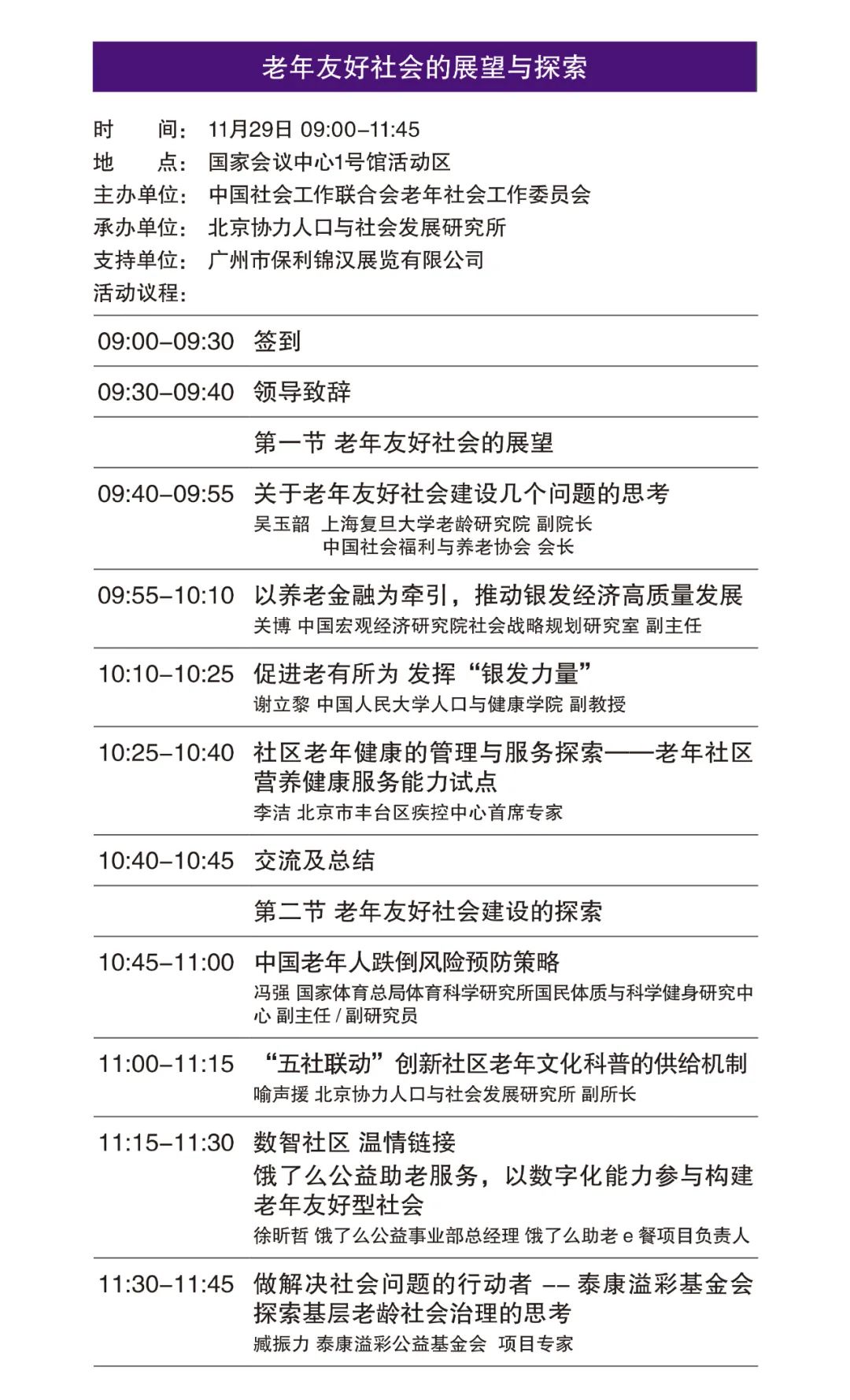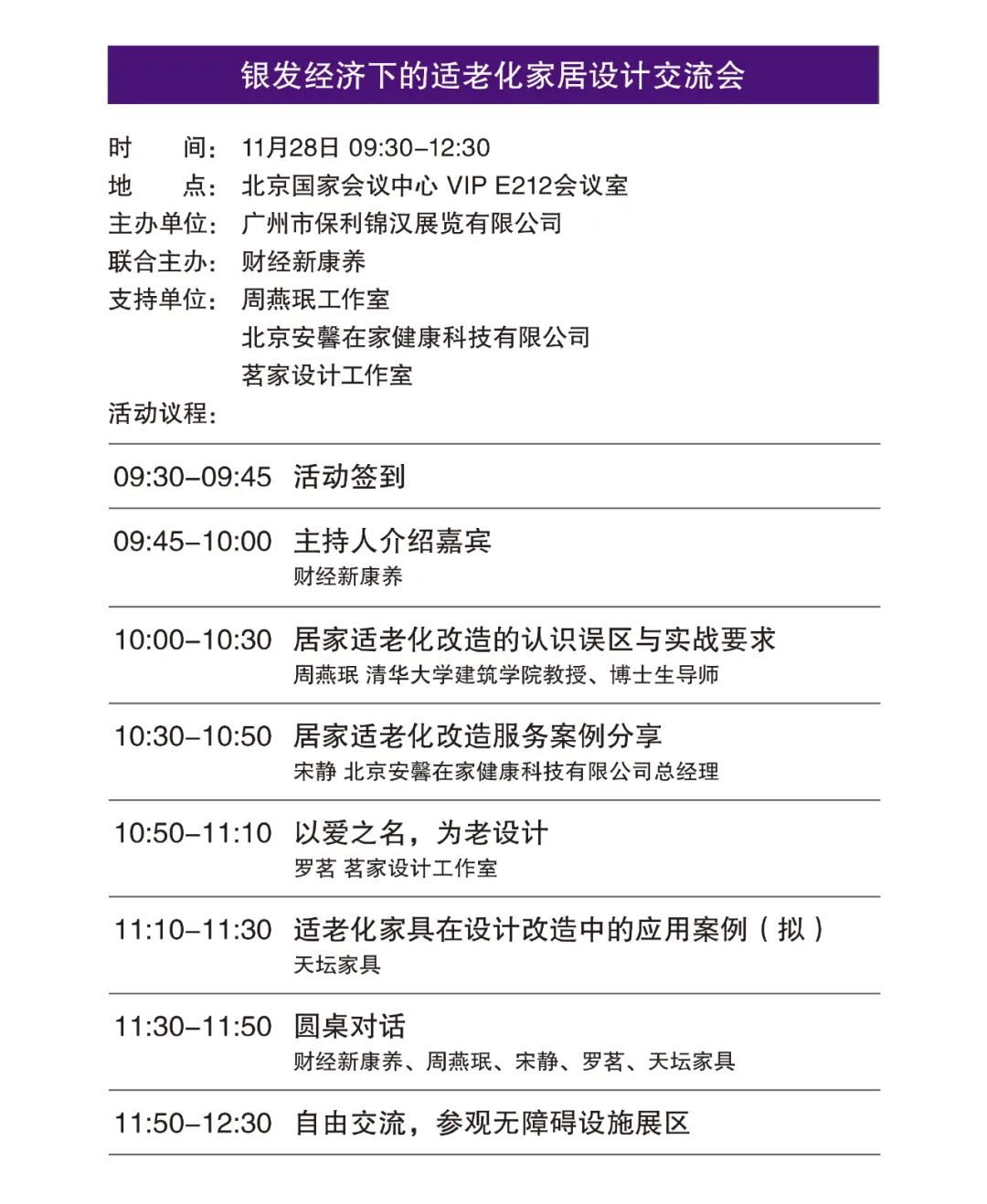 如果您對銀發(fā)經(jīng)濟、適老化改造、養(yǎng)老產(chǎn)業(yè)等話題感興趣,展會同期活動歡迎您的參與!