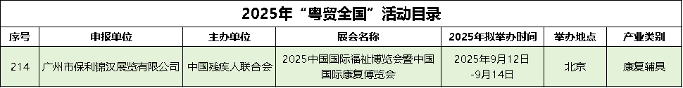 1月23日,廣東省商務(wù)廳正式公布了2025年“粵貿(mào)全國(guó)”系列展會(huì)的入圍名單,中國(guó)國(guó)際福祉博覽會(huì)暨中國(guó)國(guó)際康復(fù)博覽會(huì)(CR EXPO)憑借其專(zhuān)業(yè)性及影響力,再度入選。