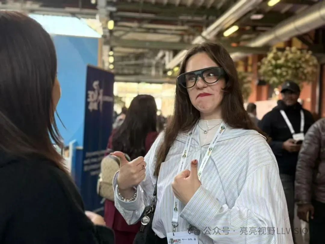 其中,亮亮視野展示了其“Leion Hey”助聽與翻譯智能眼鏡,該產(chǎn)品可實時翻譯多種語音,并轉(zhuǎn)換成文字顯示在透明鏡片上,可為多個國家聽障人士提供無障礙溝通解決方案。