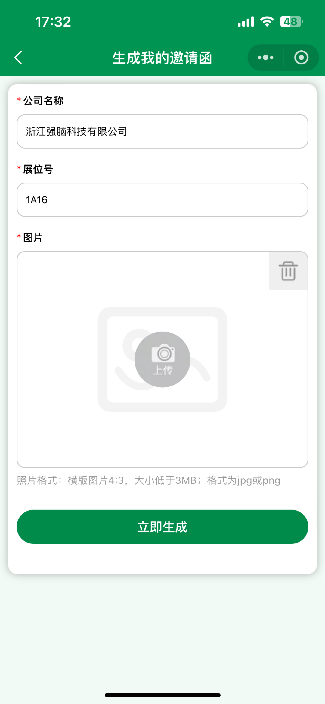 登錄【福祉在線】小程序,點擊“VIP邀請函”,并上傳產(chǎn)品圖(照片為橫版4:3,大小低于3MB;格式為jpg或png)。注:系統(tǒng)將自動識別公司名稱及展位號。