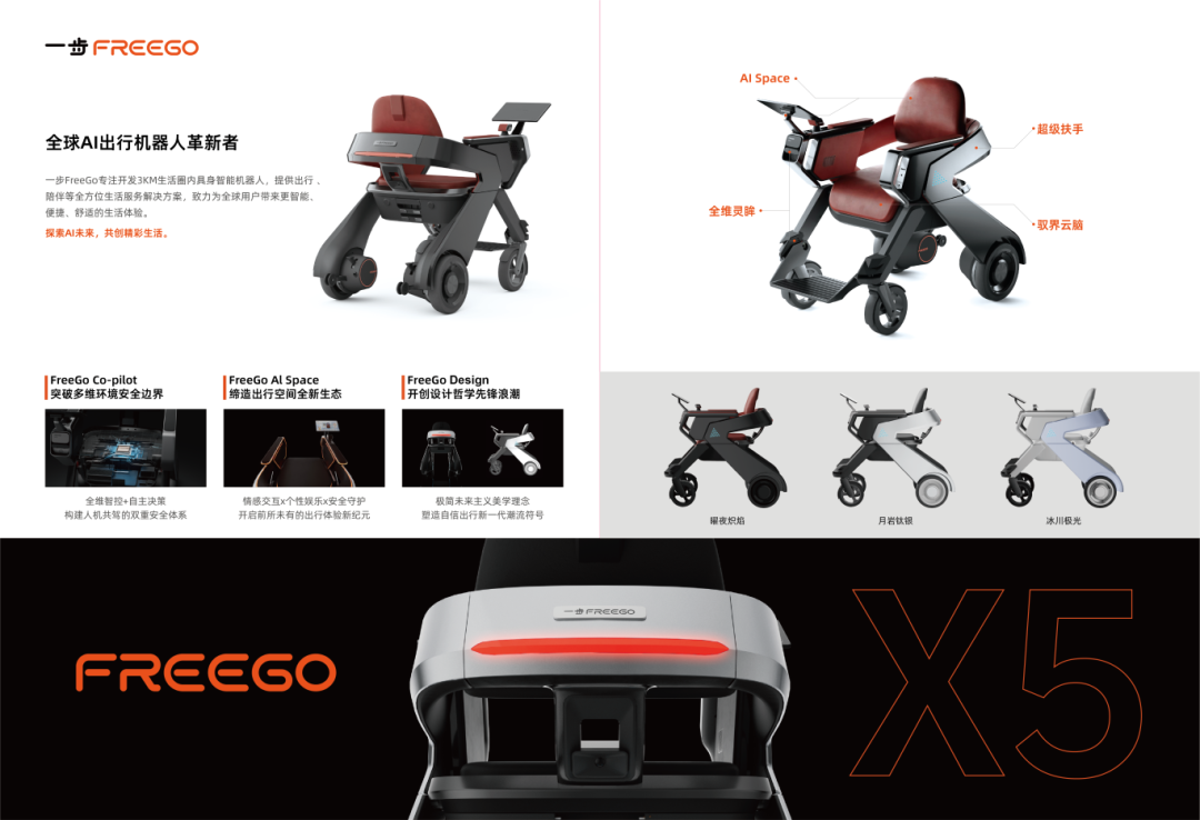 一步FreeGo X5是一款可量產(chǎn)的AI代步機(jī)器人,為用戶提供心理、操控、情感三重安全守護(hù),帶來(lái)全新的出行體驗(yàn)。