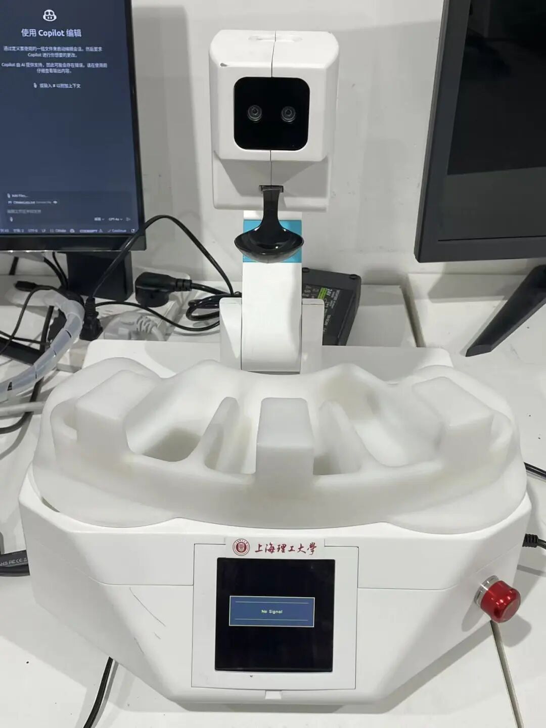 攜惠護理轉(zhuǎn)移機器人,座椅與目標智能適配、無縫對接,實現(xiàn)輕松自主轉(zhuǎn)移。上海理工大學智能助餐機器人,提出剛?cè)狁詈系臋C械結(jié)構(gòu)結(jié)合智能控制策略,實現(xiàn)機械臂的柔性交互,解決失能患者無法獨立進食的問題,減輕康養(yǎng)機構(gòu)、醫(yī)院、家庭環(huán)境下的照護壓力。