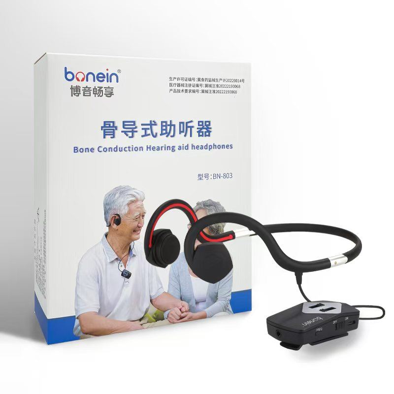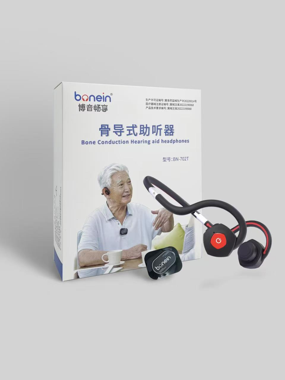 骨導(dǎo)式助聽(tīng)器BN-702T,不用塞進(jìn)耳朵,通過(guò)骨頭聽(tīng)聲音,讓用戶聽(tīng)到聲音同時(shí)還可以舒適佩戴。適合重度及重度以上用戶使用。無(wú)線連接,方便用戶多場(chǎng)景使用。比如:拾音盒放在電視機(jī)旁邊,用戶可以戴著收音頭帶,用很小音量看電視,不會(huì)影響家人小孩。公司獲得10多項(xiàng)專利認(rèn)證。