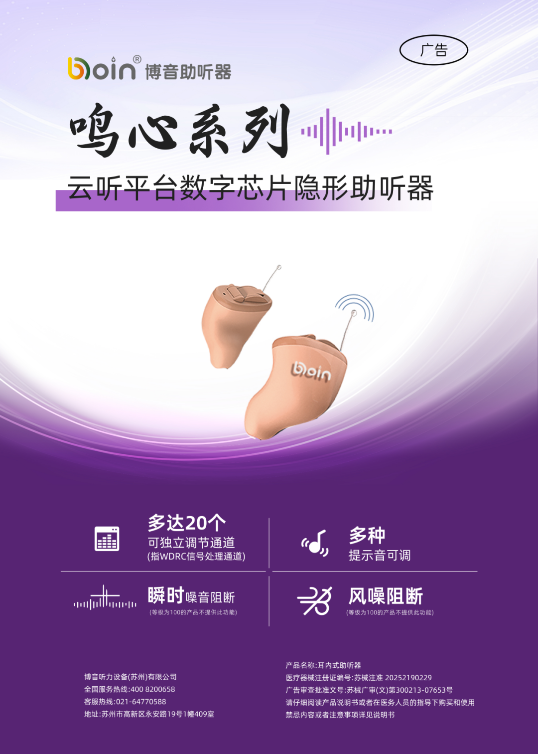 博音聽力鳴心系列助聽器專注滿足“聽得到、聽得清”的核心需求,搭載全數(shù)字技術(shù),提供清晰細膩音質(zhì)。其多達20個獨立可調(diào)通道細致處理聲音,保留真實言語細節(jié),顯著提升聆聽清晰度與對話理解力。系列產(chǎn)品具備瞬時噪音阻斷功能,有效消除突發(fā)噪聲干擾,以及風噪阻斷功能,提升戶外強風環(huán)境下的聆聽舒適度,助您輕松交流,全情投入對話。