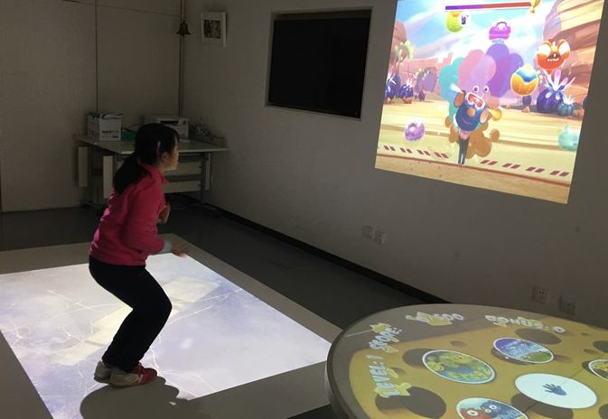 ? 當參與者踏入投影投射的影響時,可以直接使用雙腳或者雙手及身體的各個部位與虛擬場景進行交互,產生各種互動效果,從而達到感統訓練的效果。