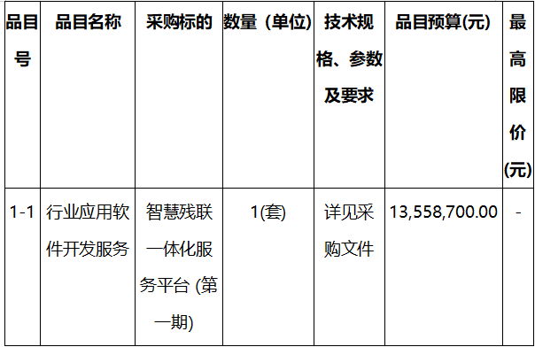 黑龍江省殘疾人聯(lián)合會(huì)項(xiàng)目建設(shè)內(nèi)容包括“智慧殘聯(lián)”一體化服務(wù)平臺(tái)(第一期)招標(biāo)公告