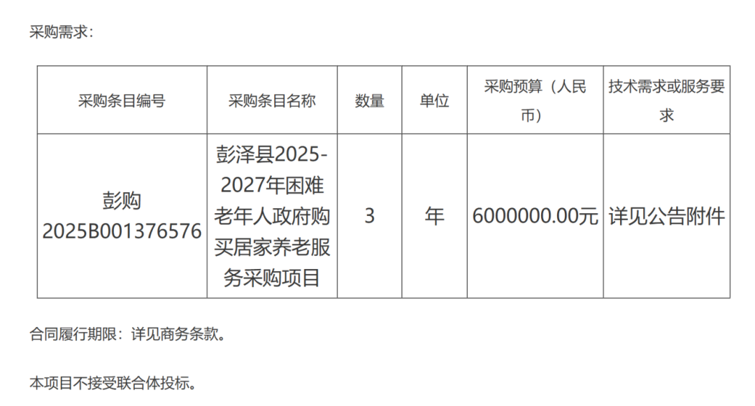 九江市人眾招投標(biāo)咨詢有限公司彭澤縣分公司關(guān)于彭澤縣民政局2025-2027年度困難老年人政府購買居家養(yǎng)老服務(wù)采購項目(編號:JJRZPZ-2025GK-001)采購公告