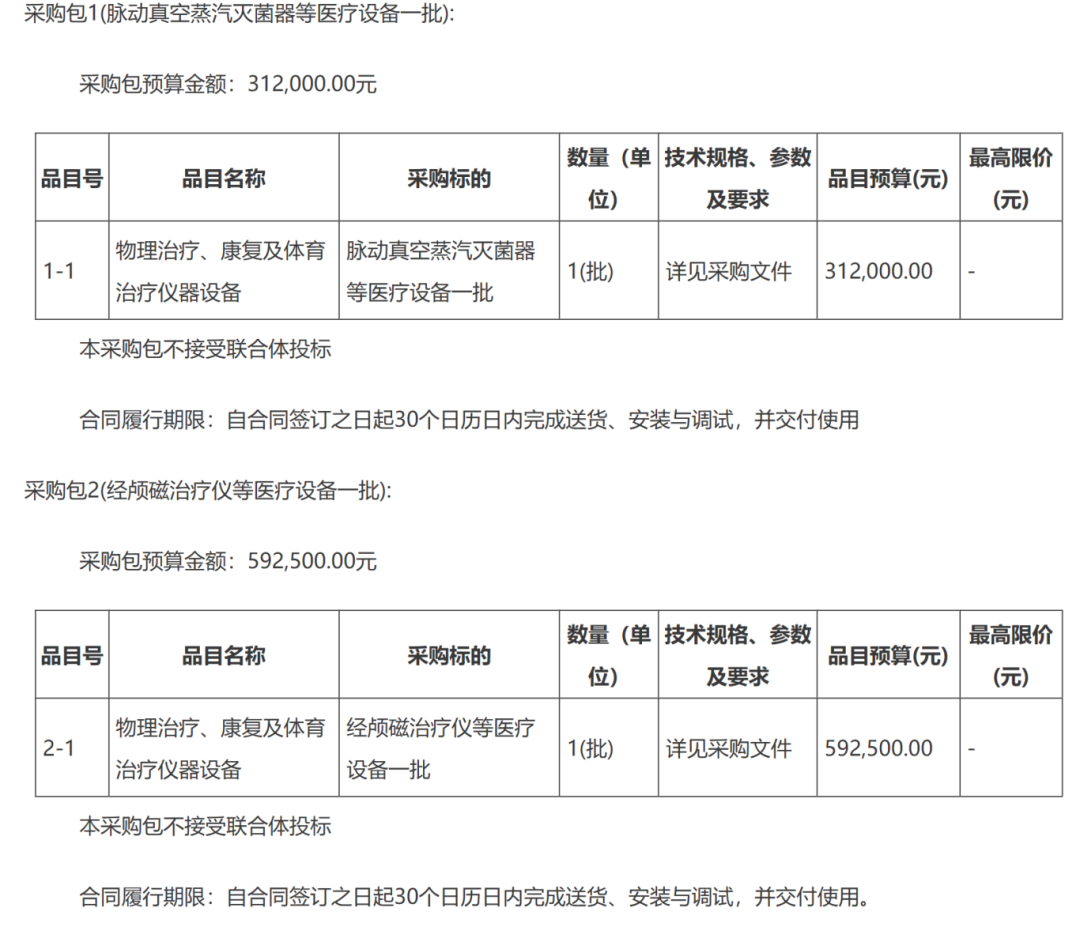 A包:康復(fù)科設(shè)備采購,B包:心血管科、兒科設(shè)備采購